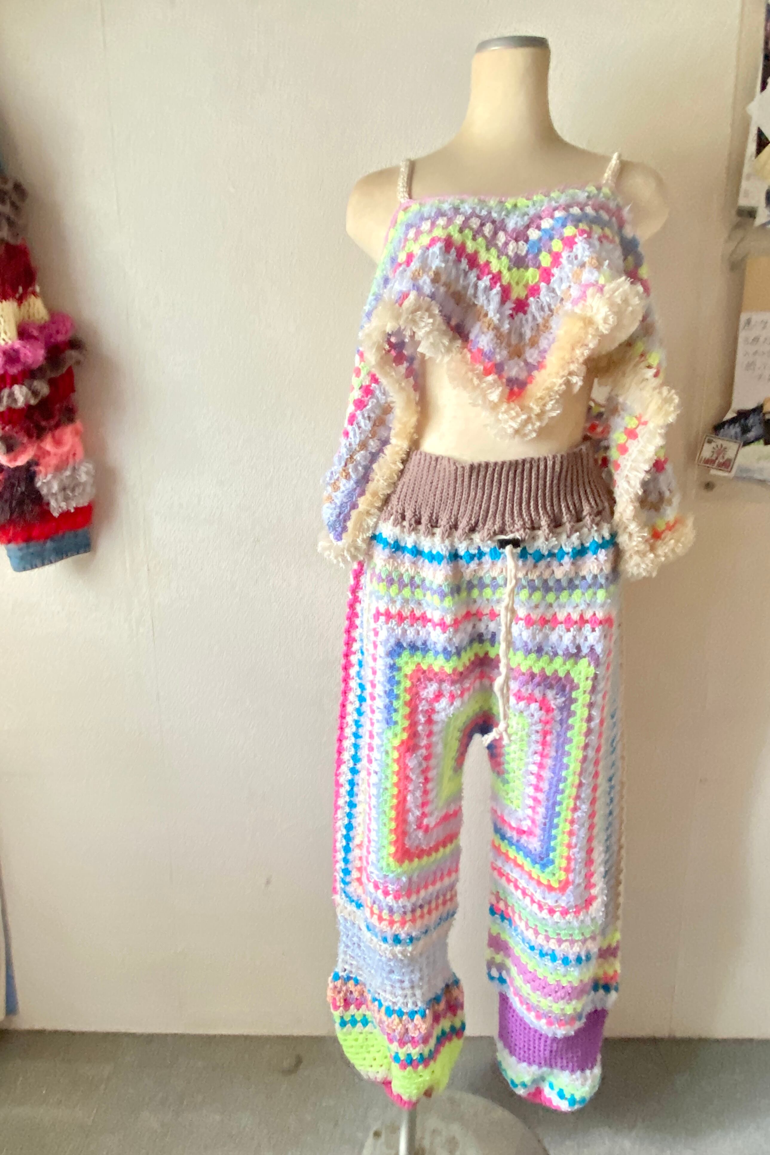 "Vivid and unique! Art piece knit pants 1枚仕立てのカラフルグラニーパンツ