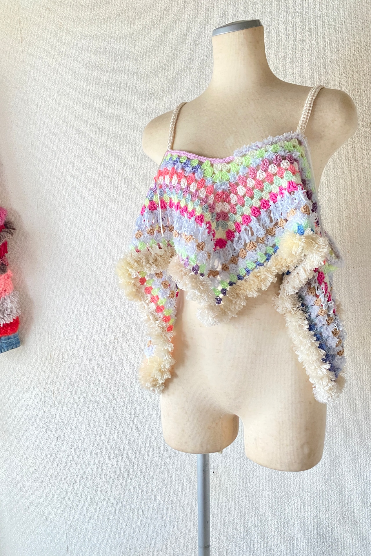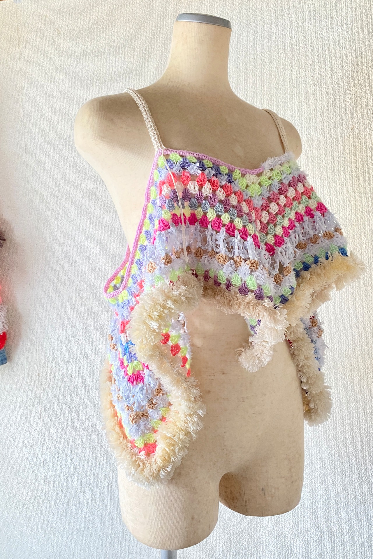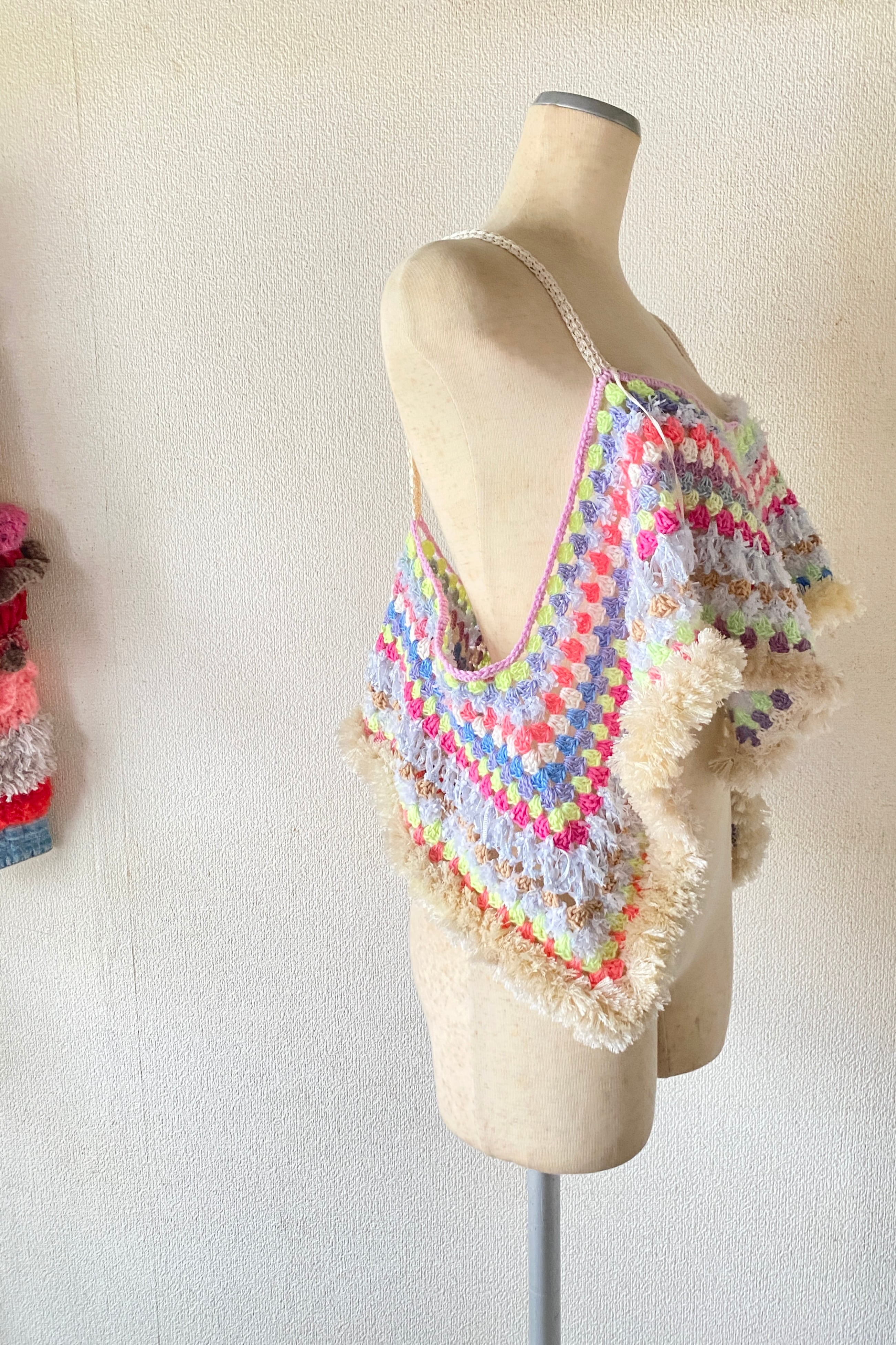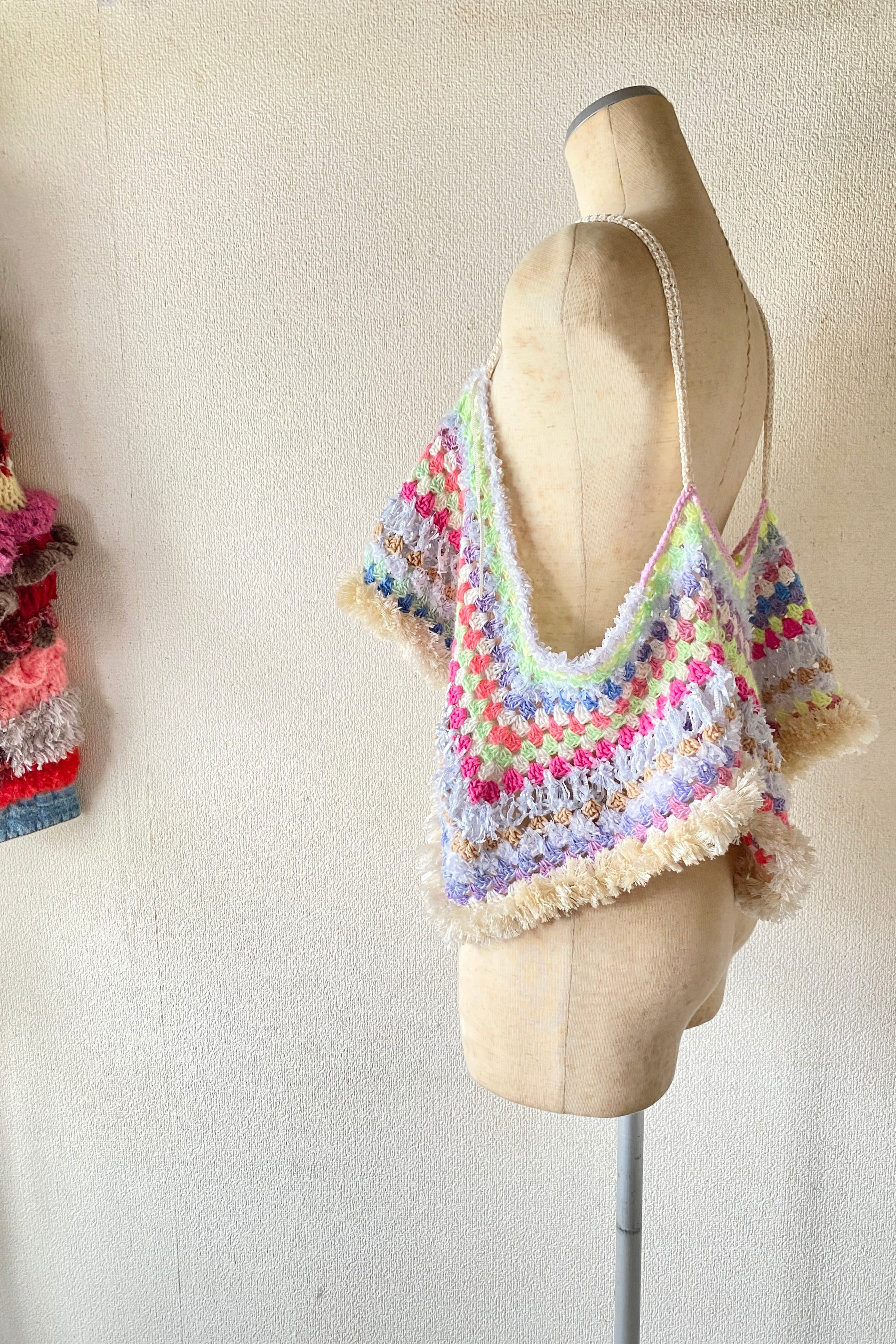 Rainbow Dream Fringe – Handmade Crochet Festival Top (One of a Kind) 手編みクロシェ×グラニースクエアの一点ものビスチェ
