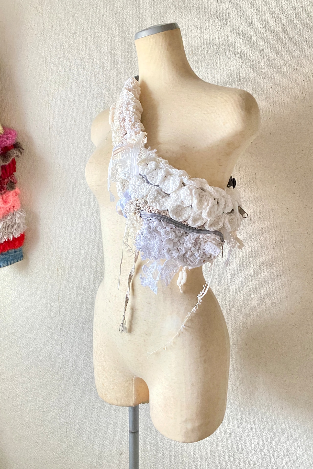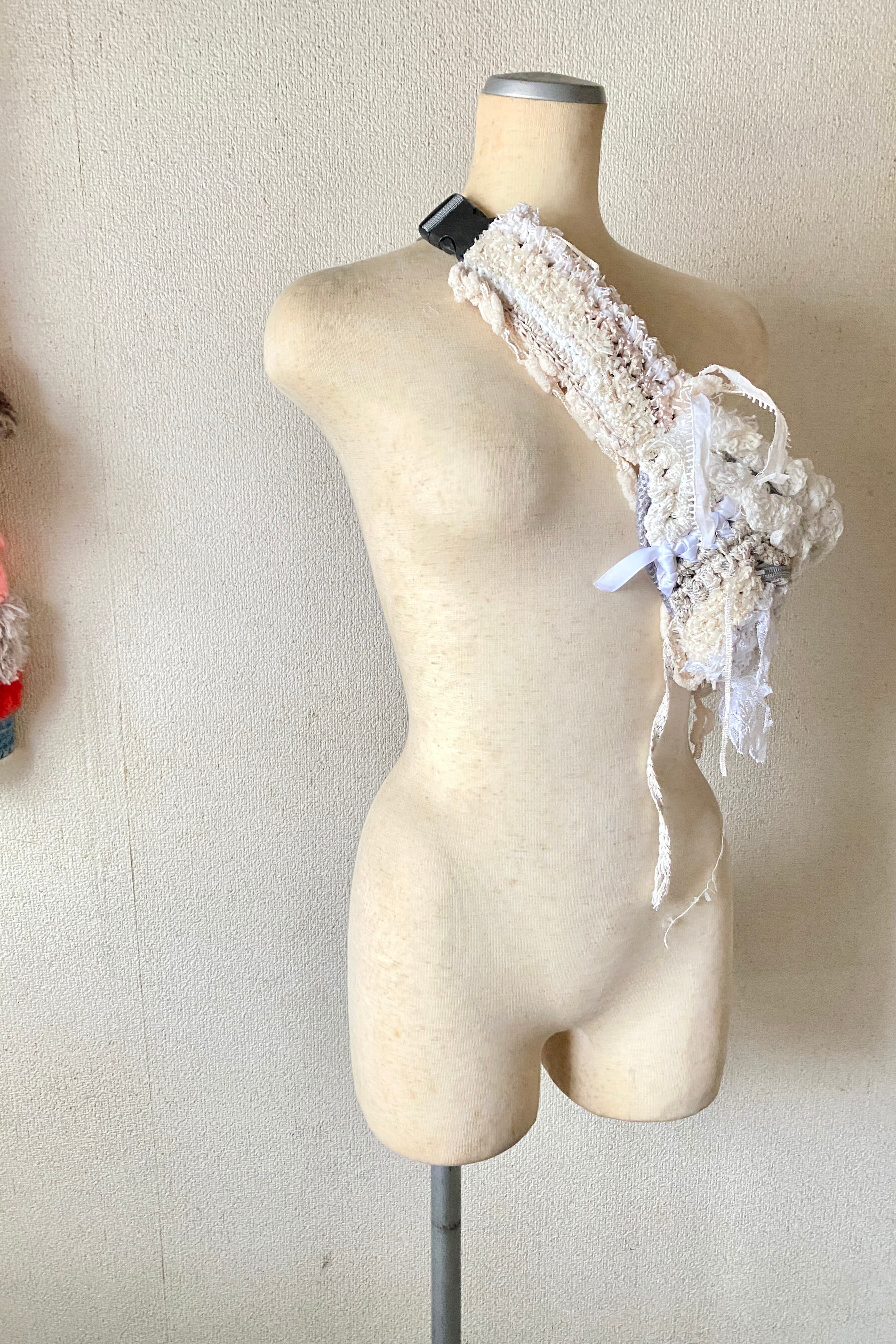 今回メインで使用したのは、ウェディングドレスに使われたレースの端材やリボンです