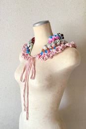 「2wayハンドメイド・バブーシュカ/付け襟にもなるヘアアクセ」くすみ レトロカラー