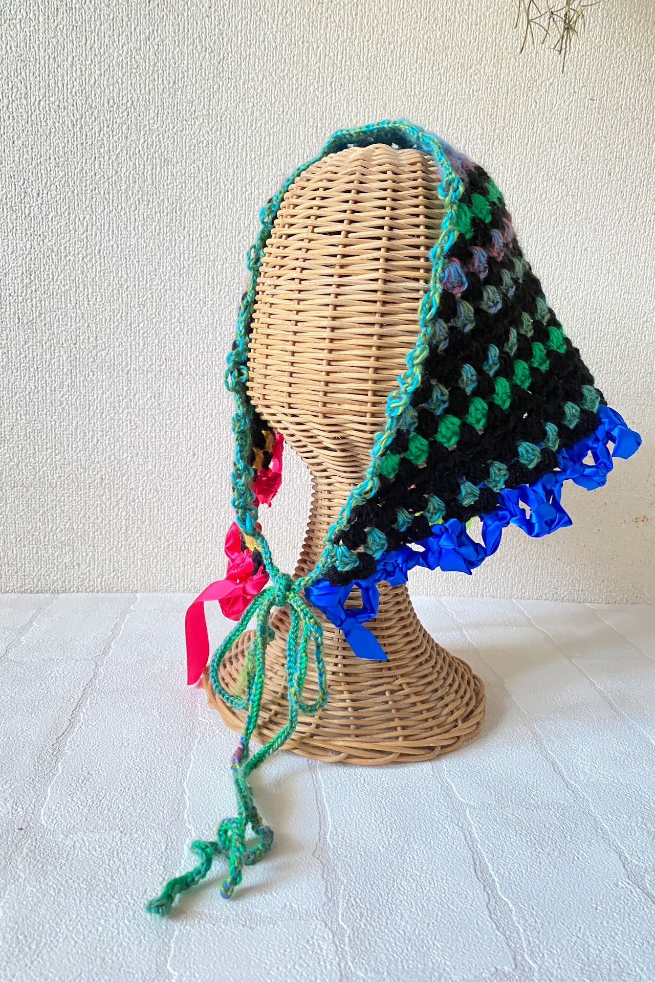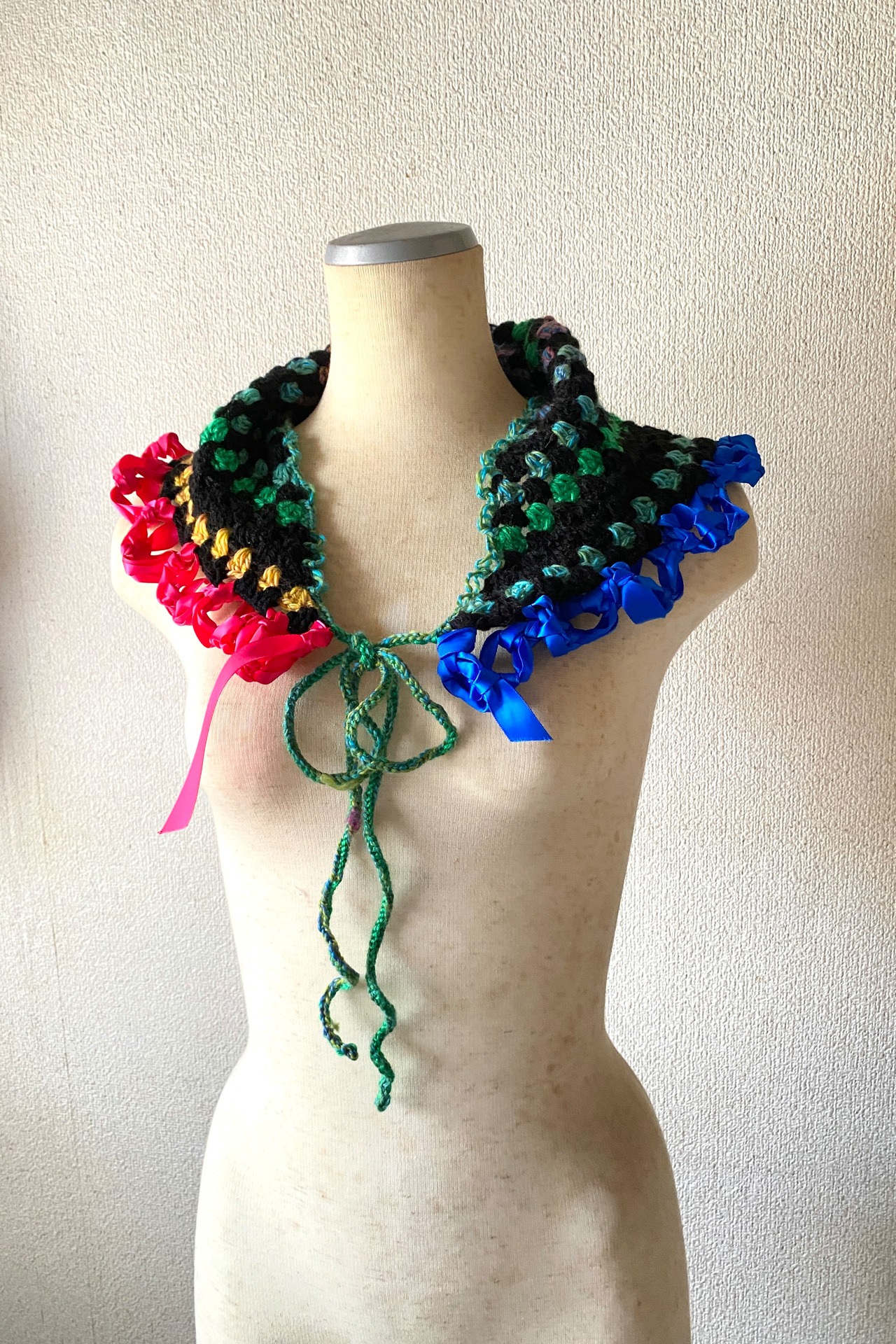 「2wayハンドメイド・バブーシュカ/付け襟にもなるヘアアクセ」ネオンカラー リボン