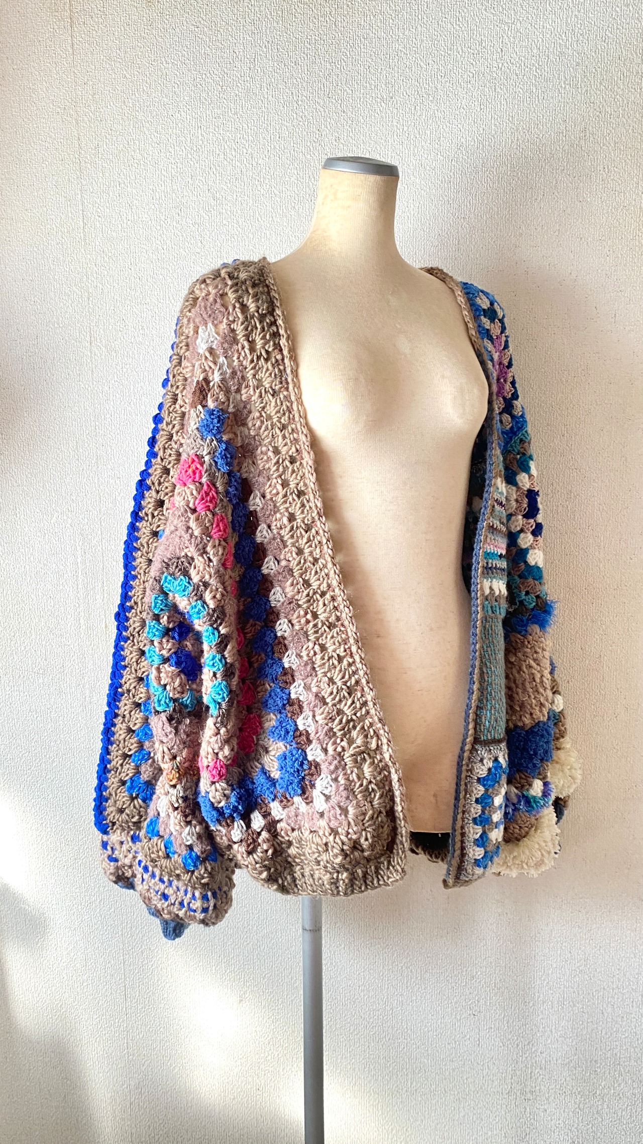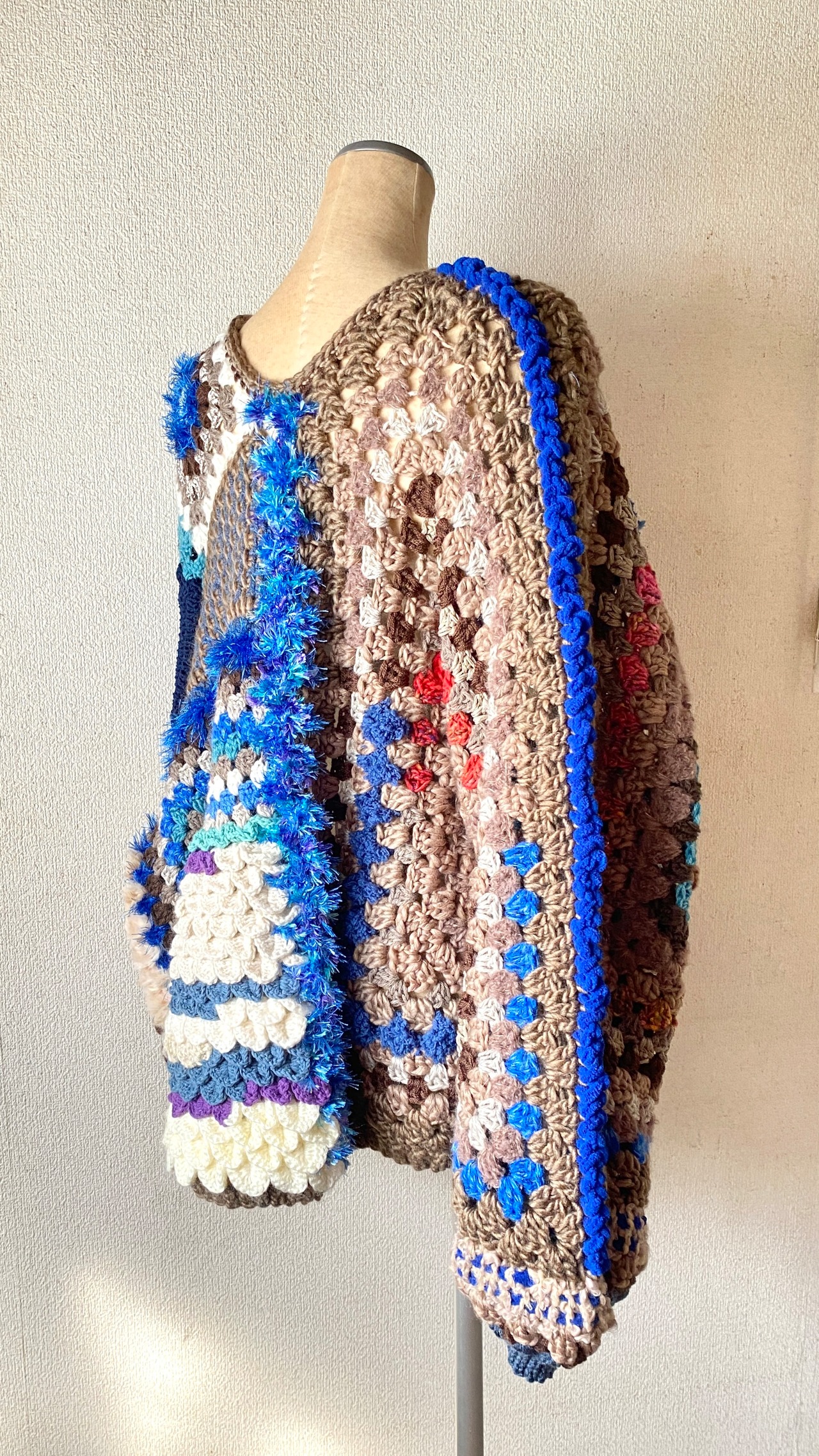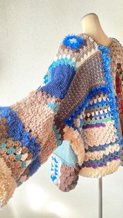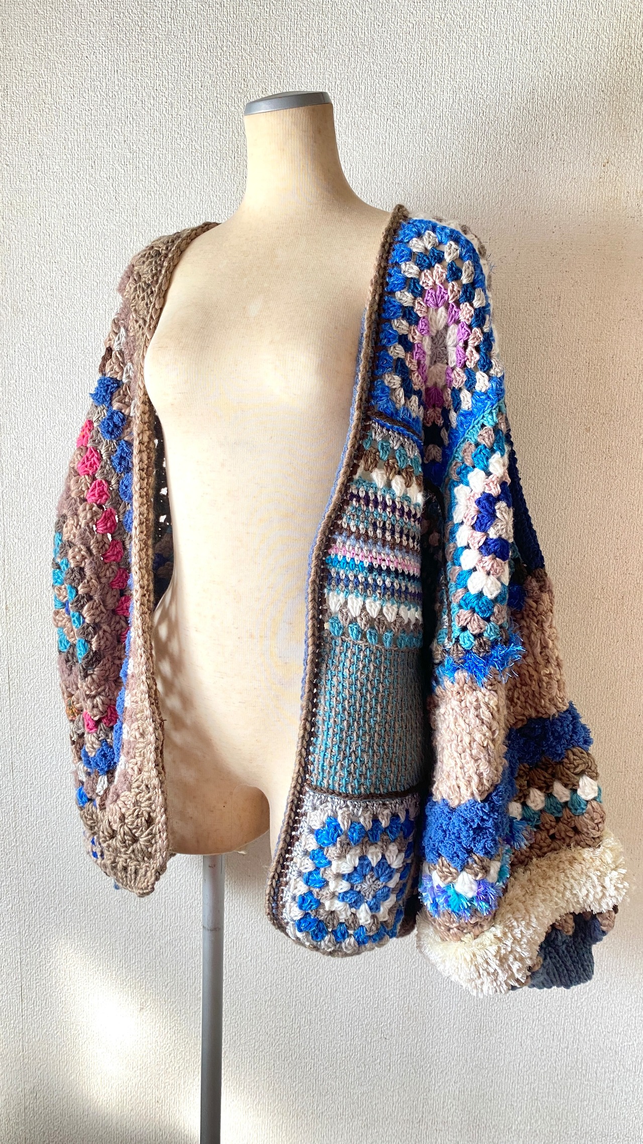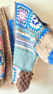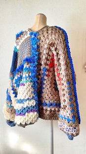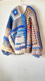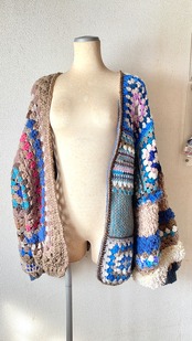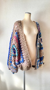 Crocheted granny hexagon and square motif asymmetrical cardigan かぎ針編みモチーフカーディガン ヘキサゴングラニーとグラニースクエアと