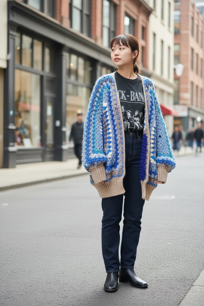 【私だけのÖRÜG】ブルーベースアシンメトリーカーディガン ロング
