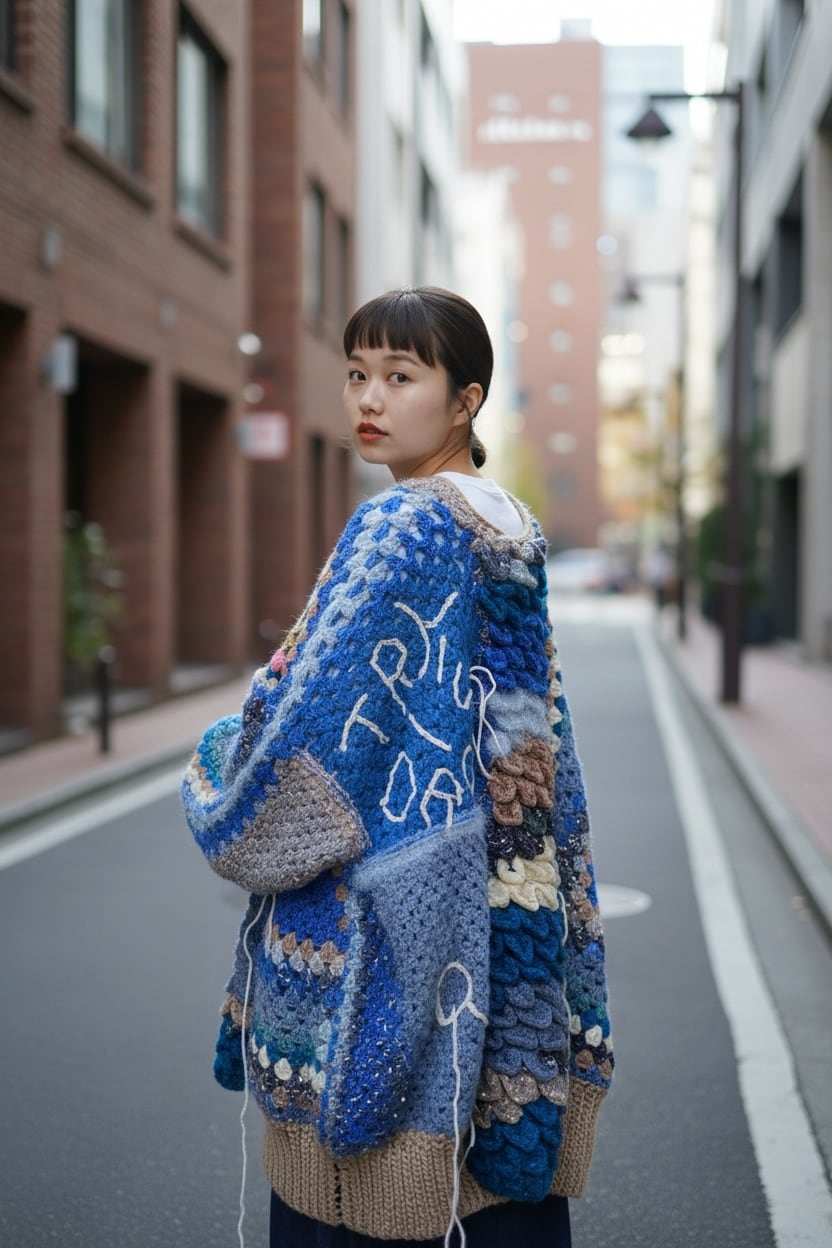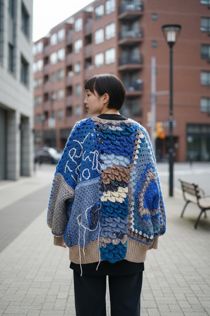 画像の作品をデザインベースにしたアシンメトリーカーディガンを製作します