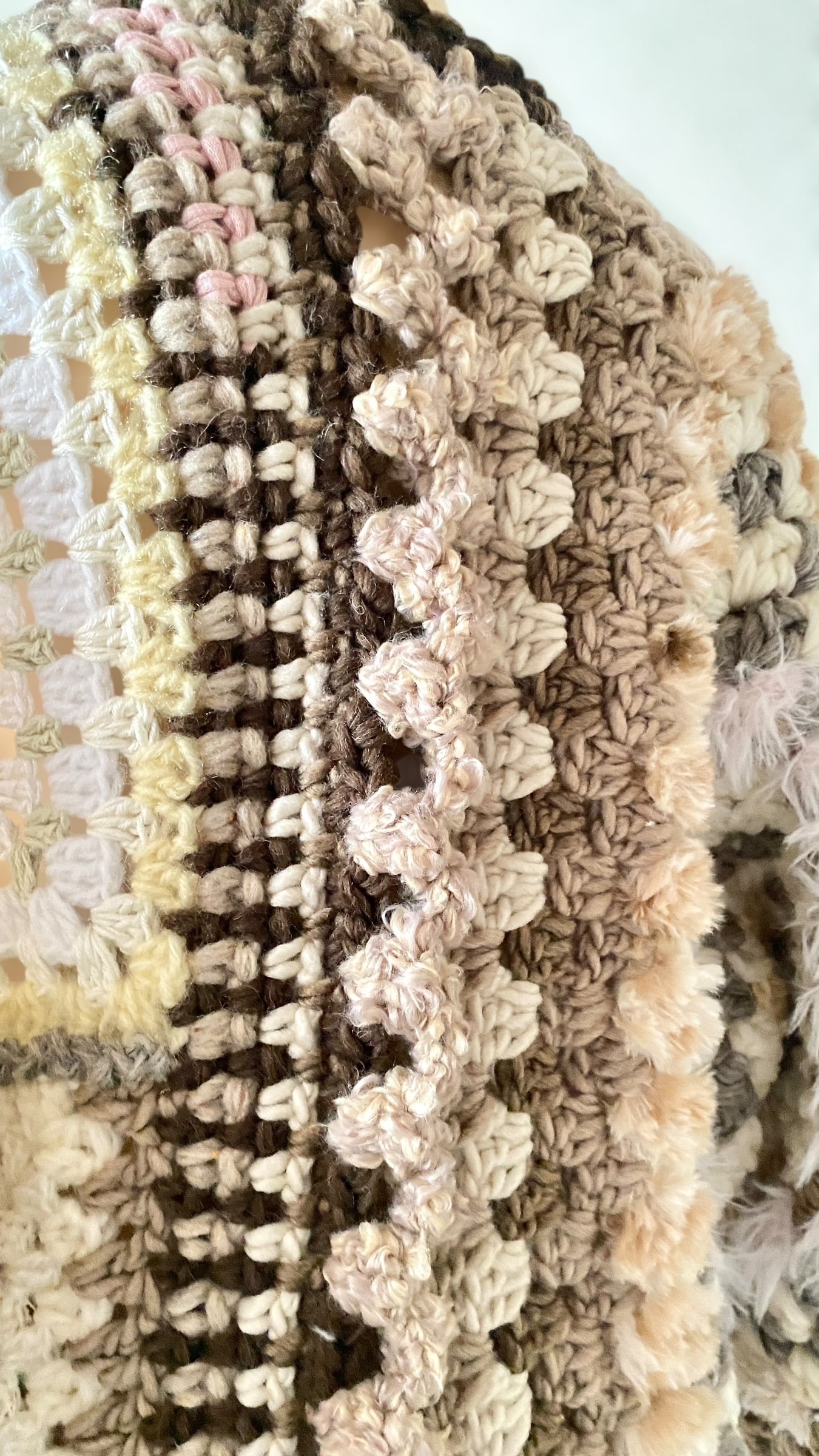 ⭐︎ Hand-knitted granny hexagon motif cardigan made with plenty of Cowichan yarn. カウチンヤーンのヘキサゴングラニーカーディガン