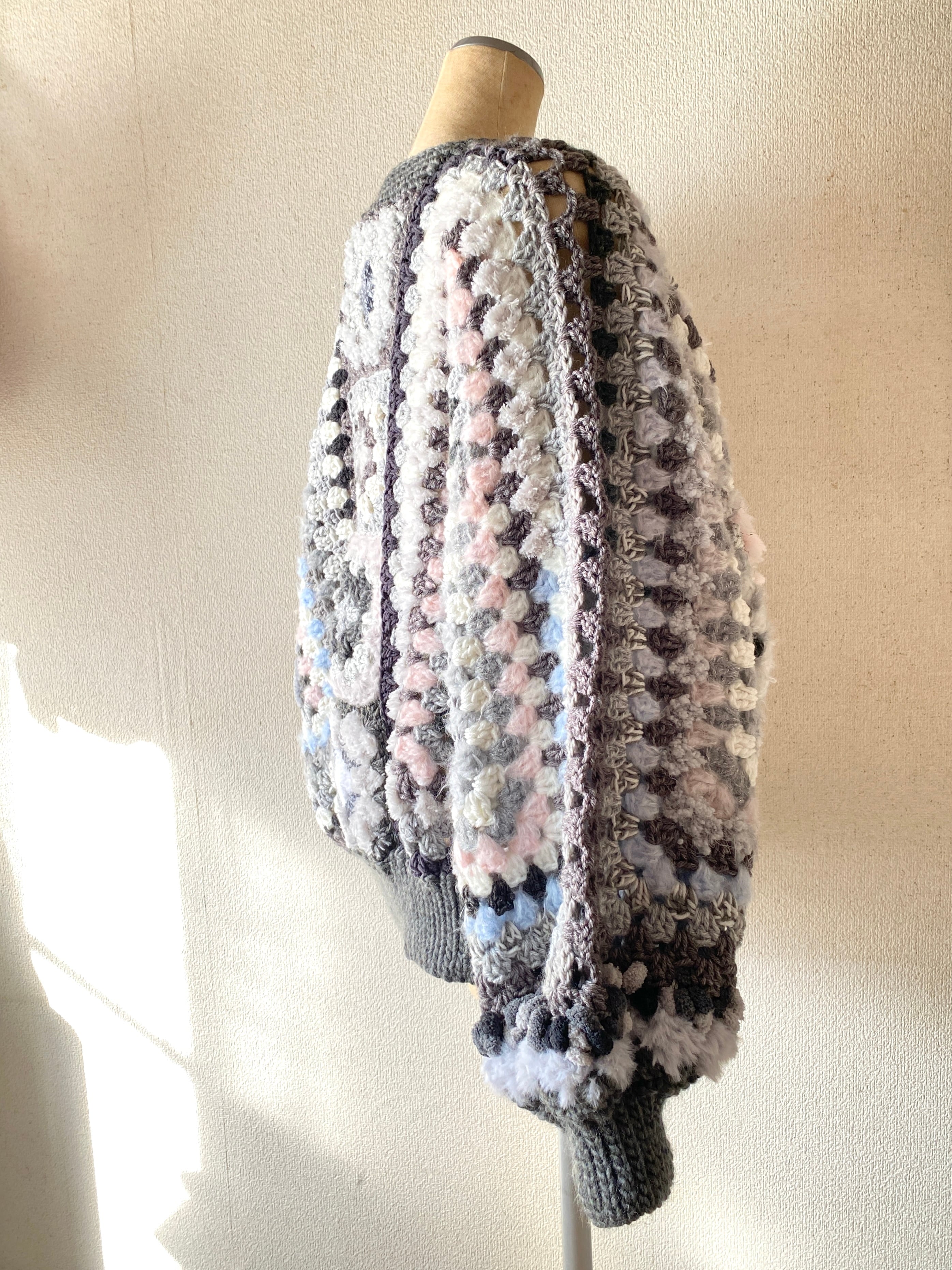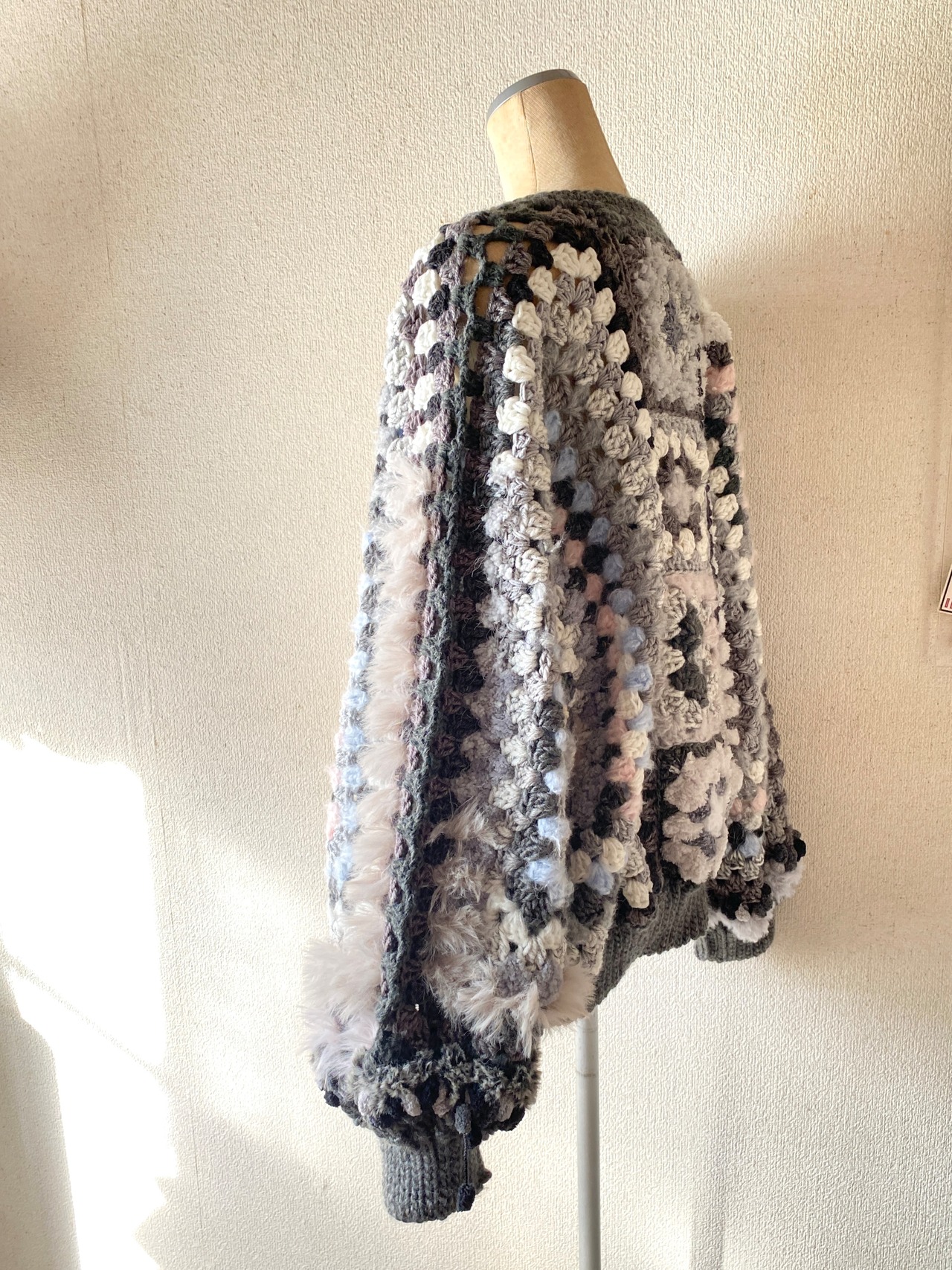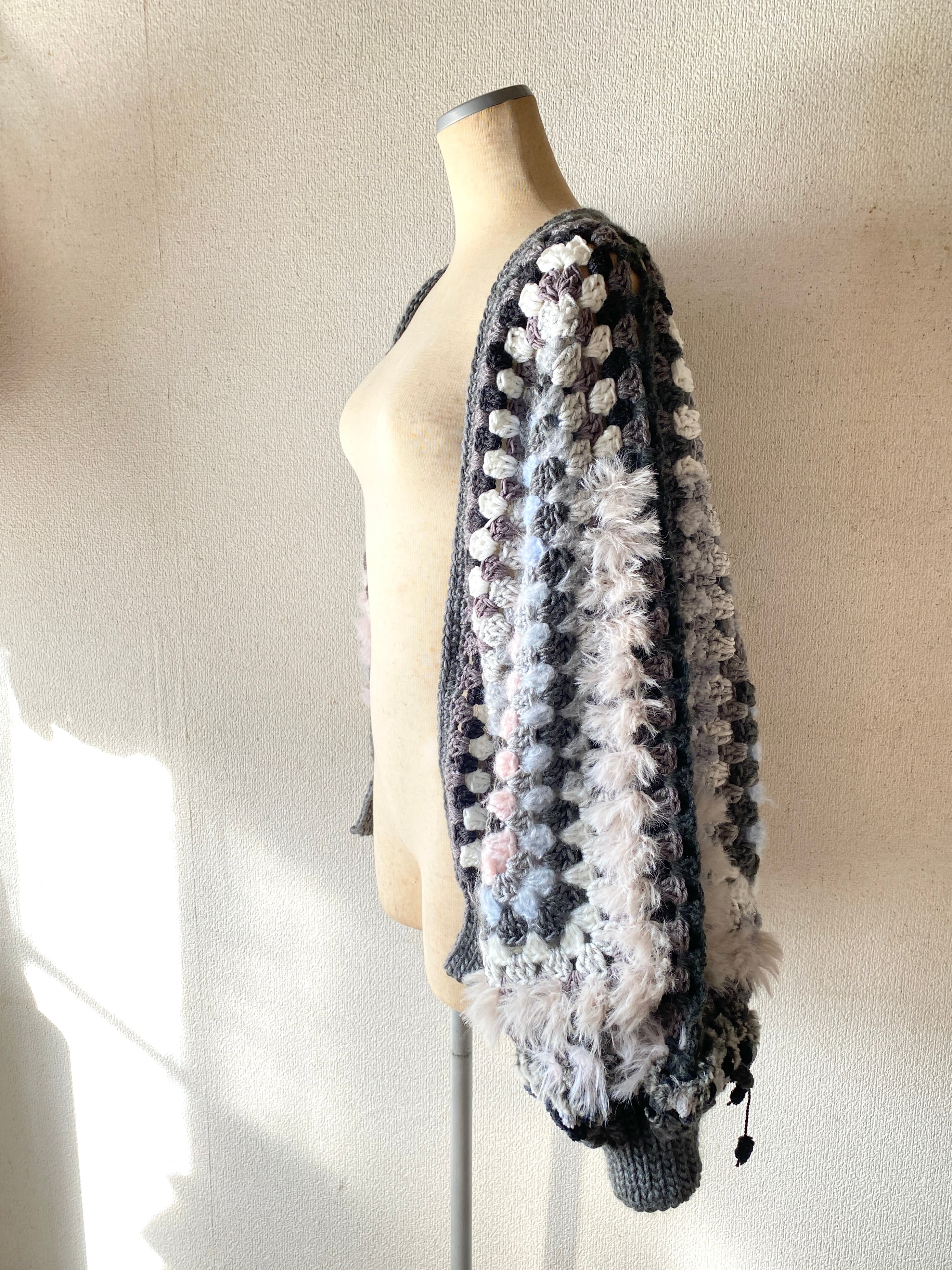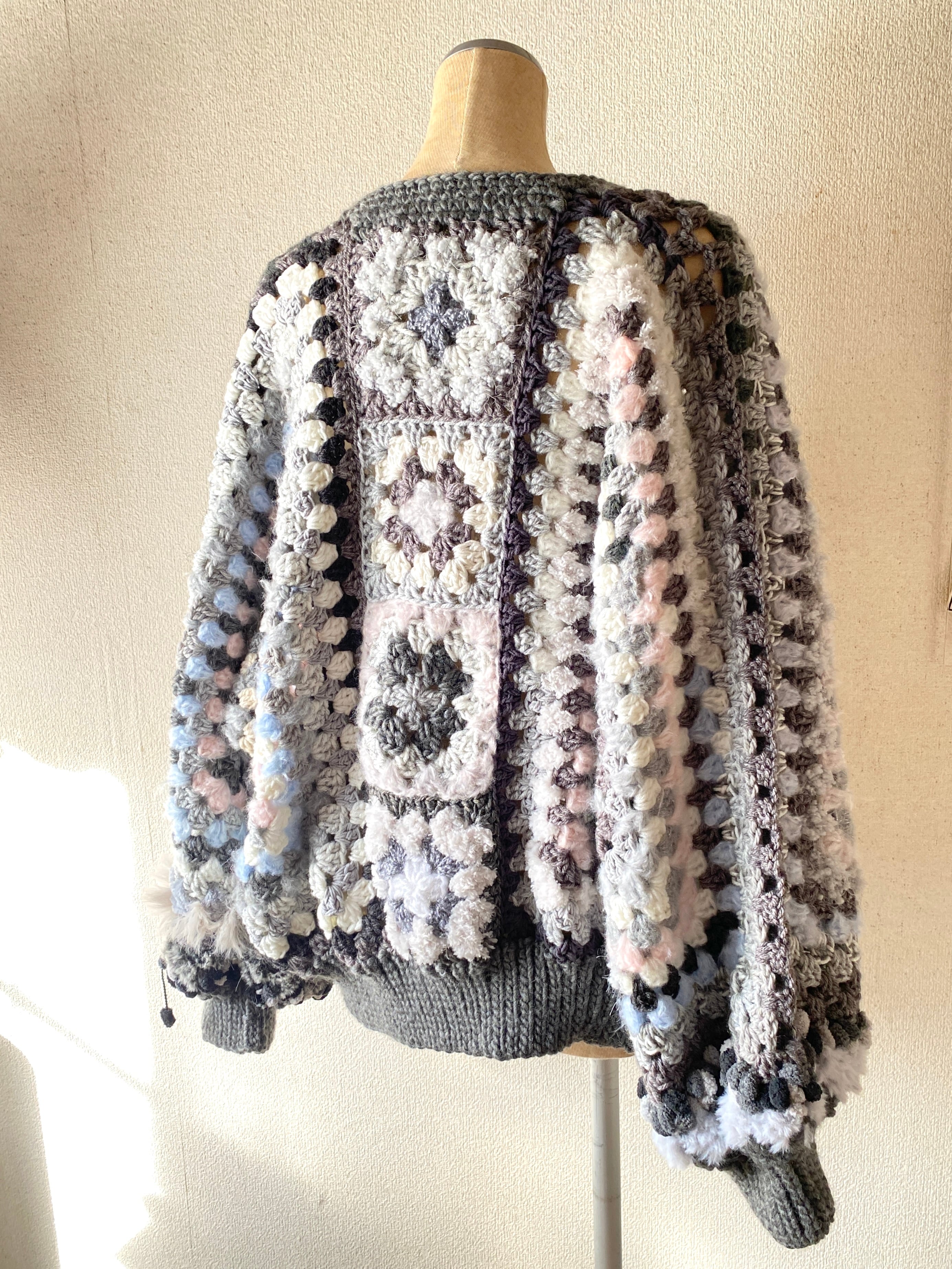画像1〜3枚目のデザインをベースにしたモノトーンのヘキサゴンカーディガンです