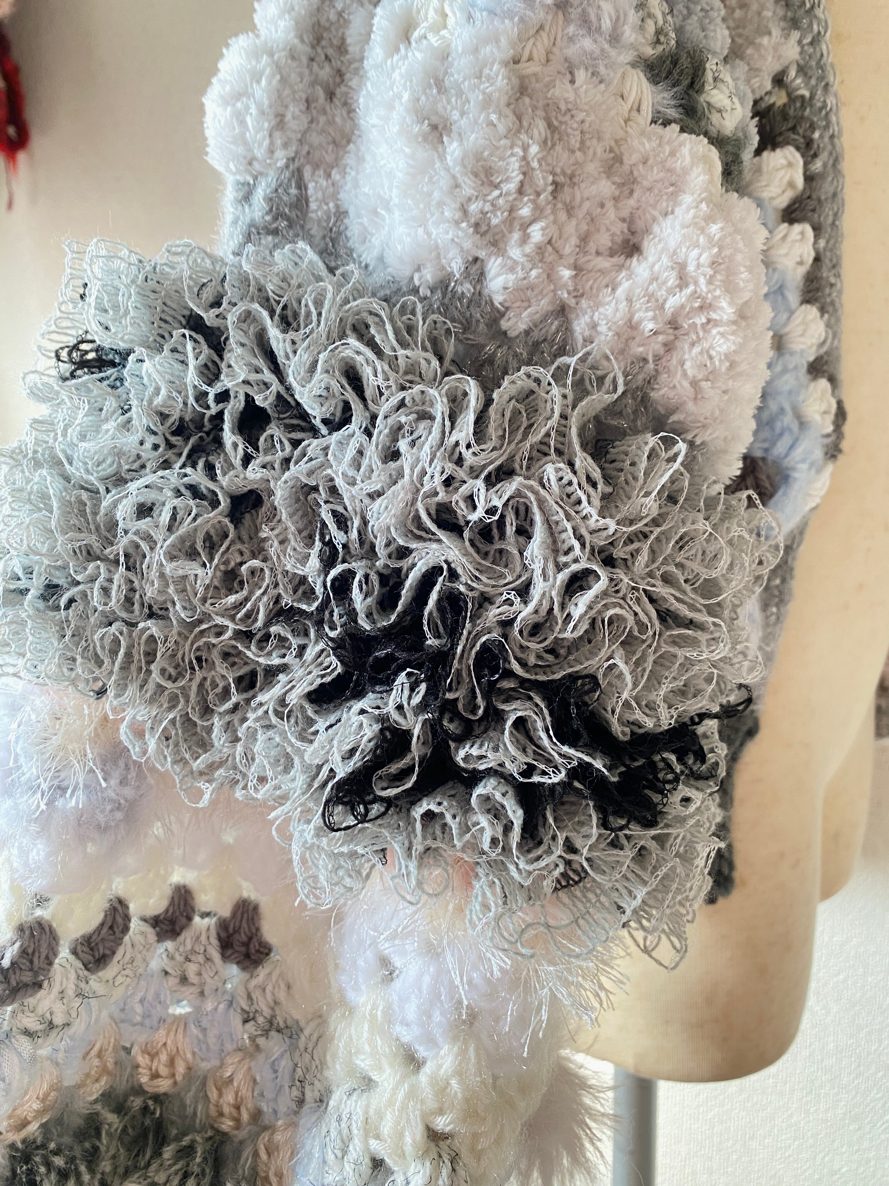 ふわふわ毛足が長めの糸をたっぷり使ったグラニースクエアモチーフと