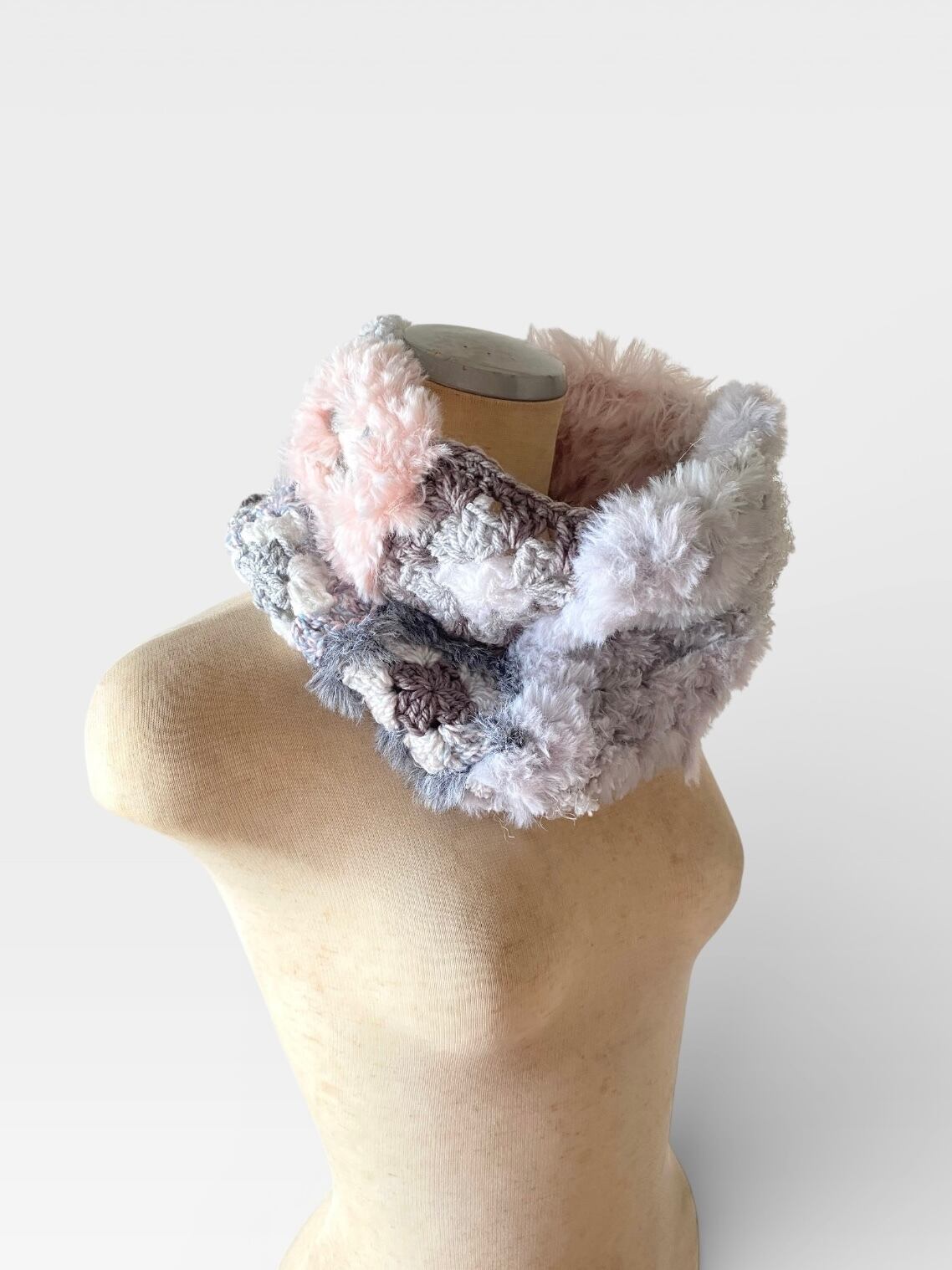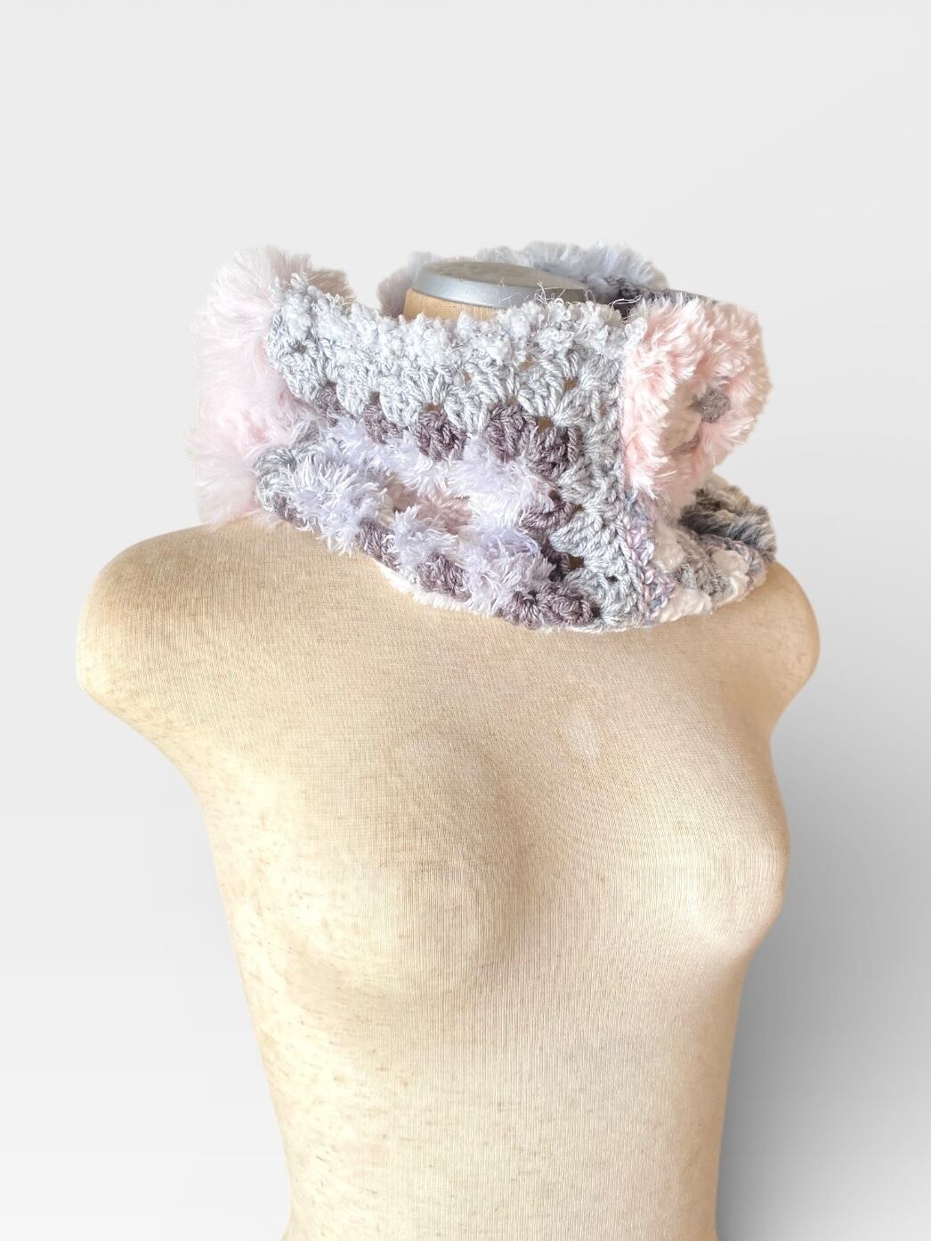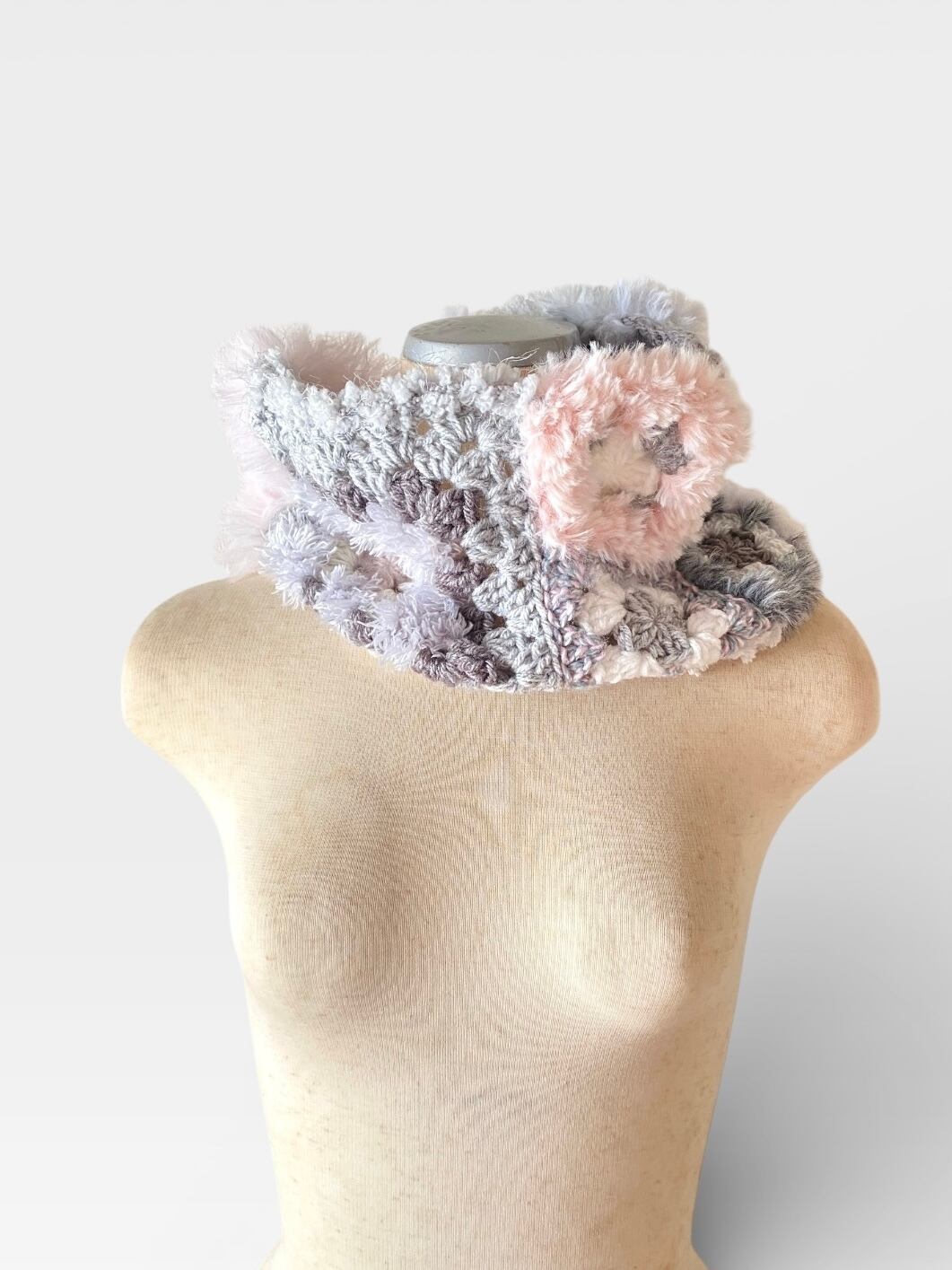 グラニースクエアモチーフをベースにしたネックウォーマーを製作します