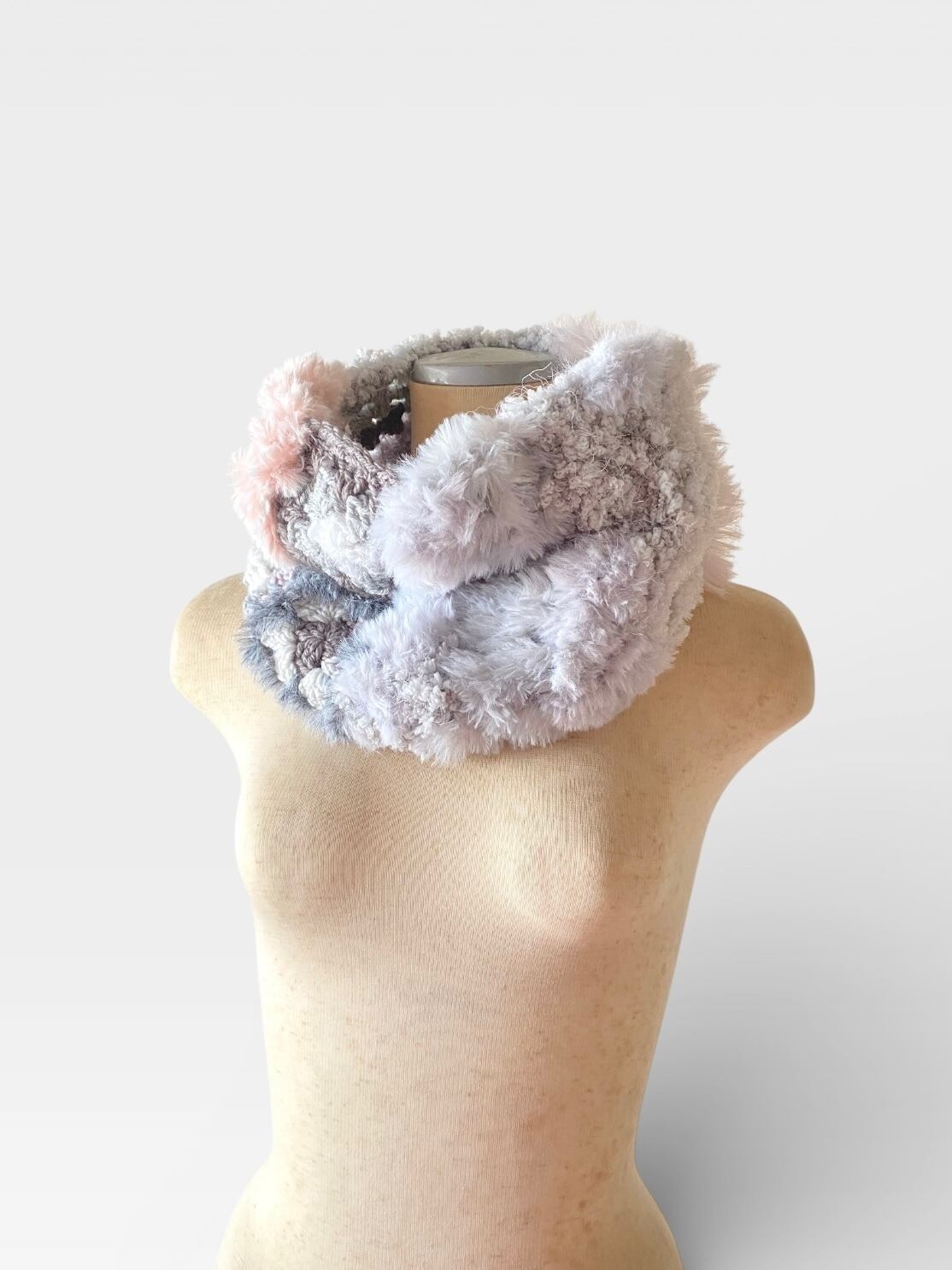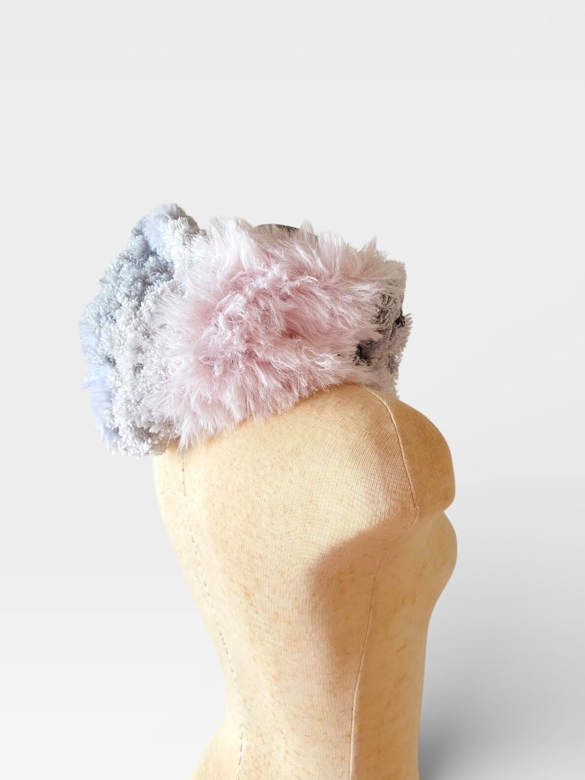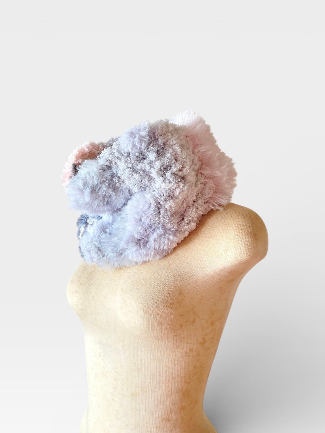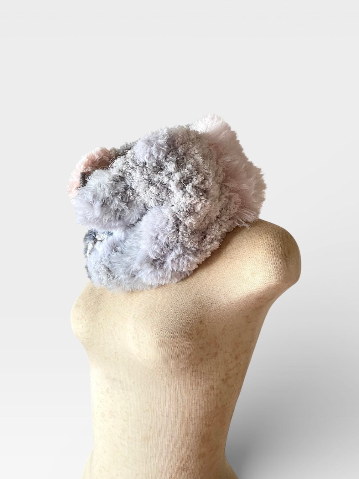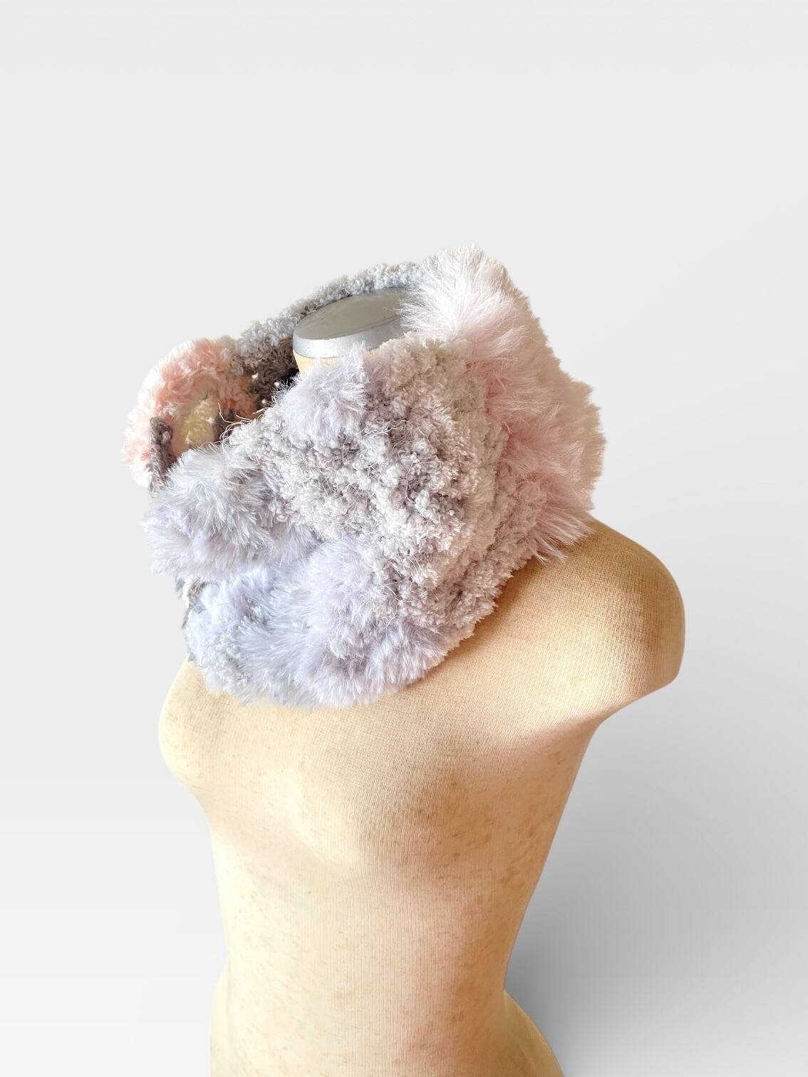エコファー部分はベビーピンクのファーと淡いグレーの配色