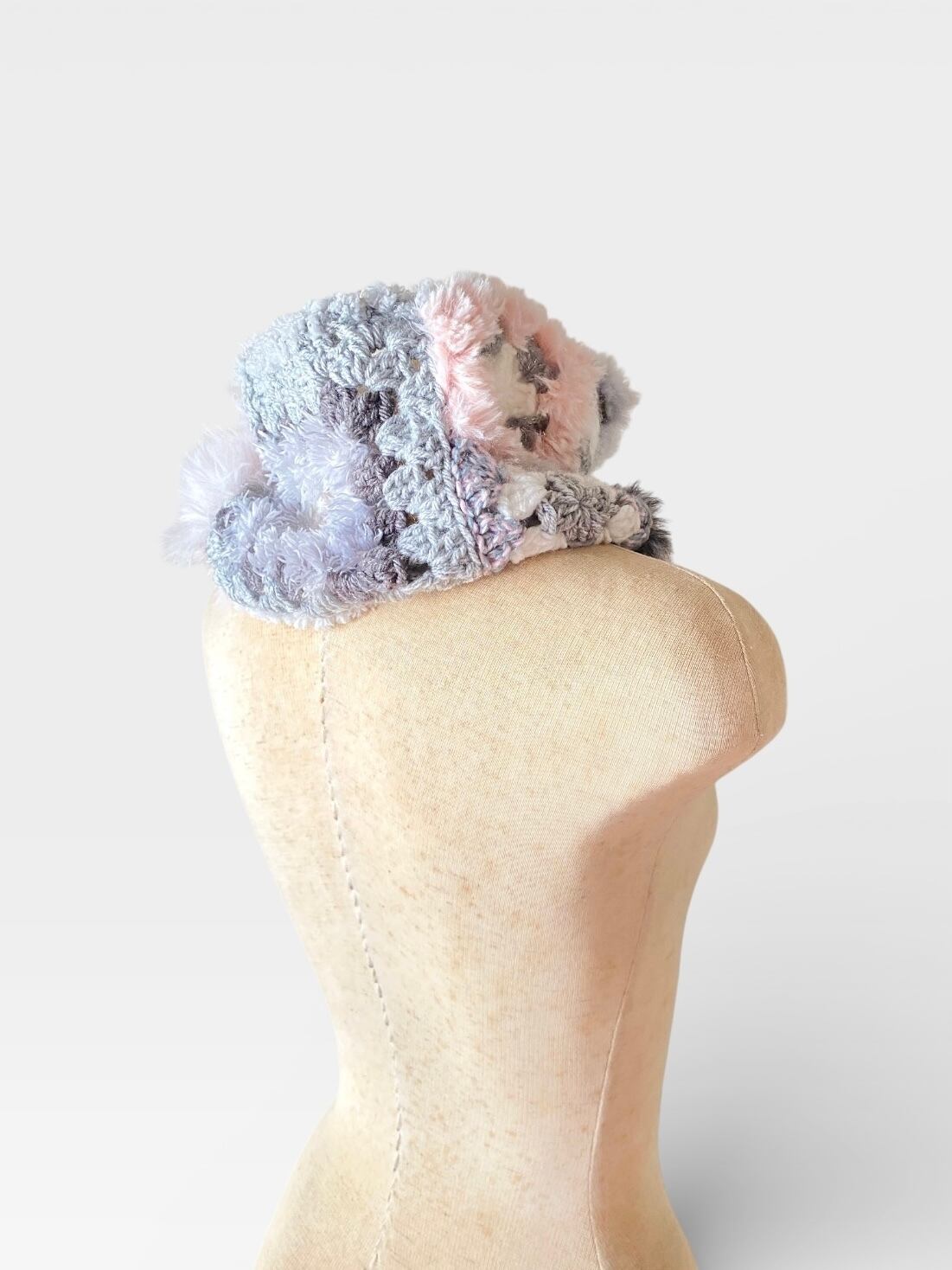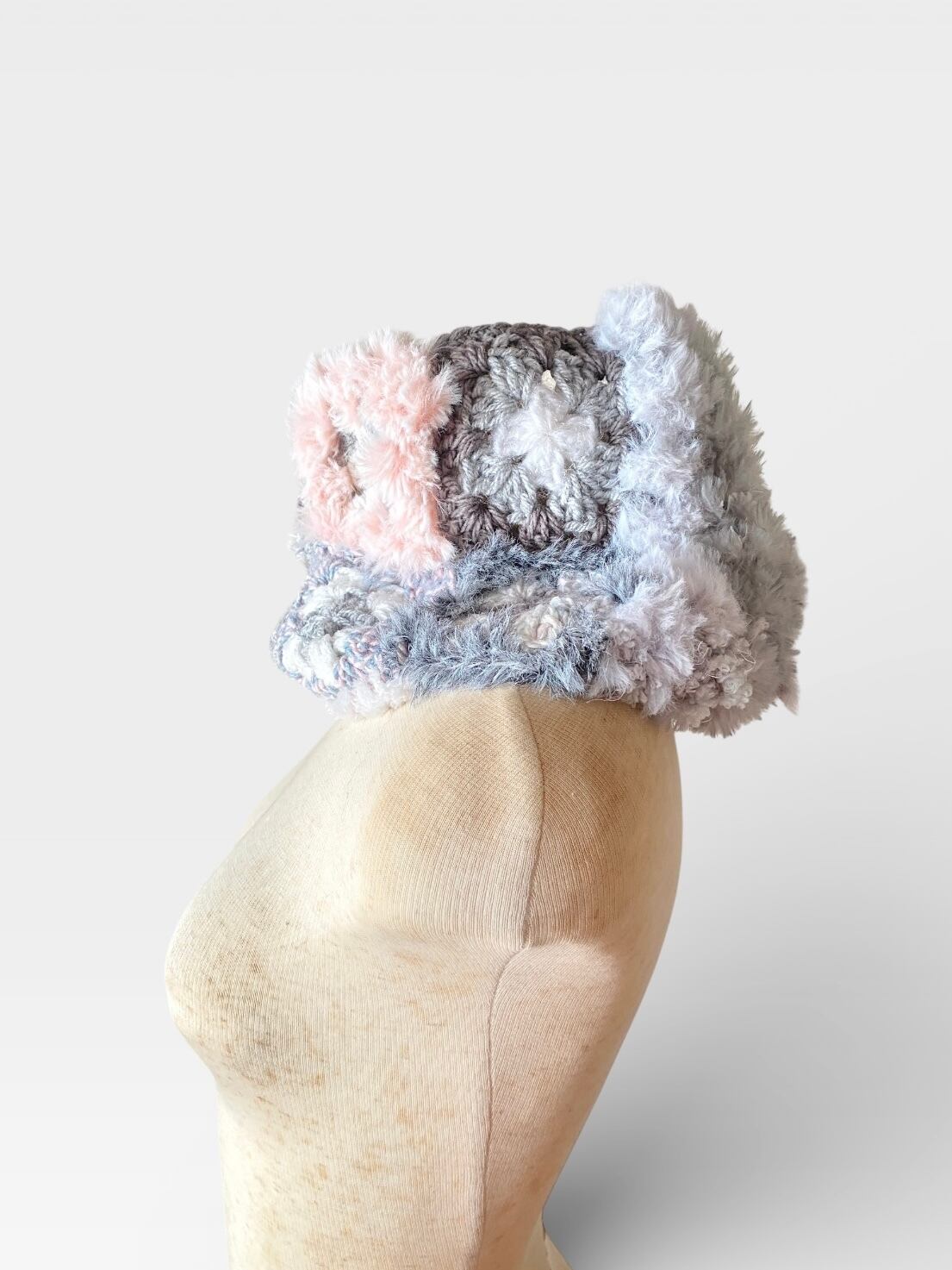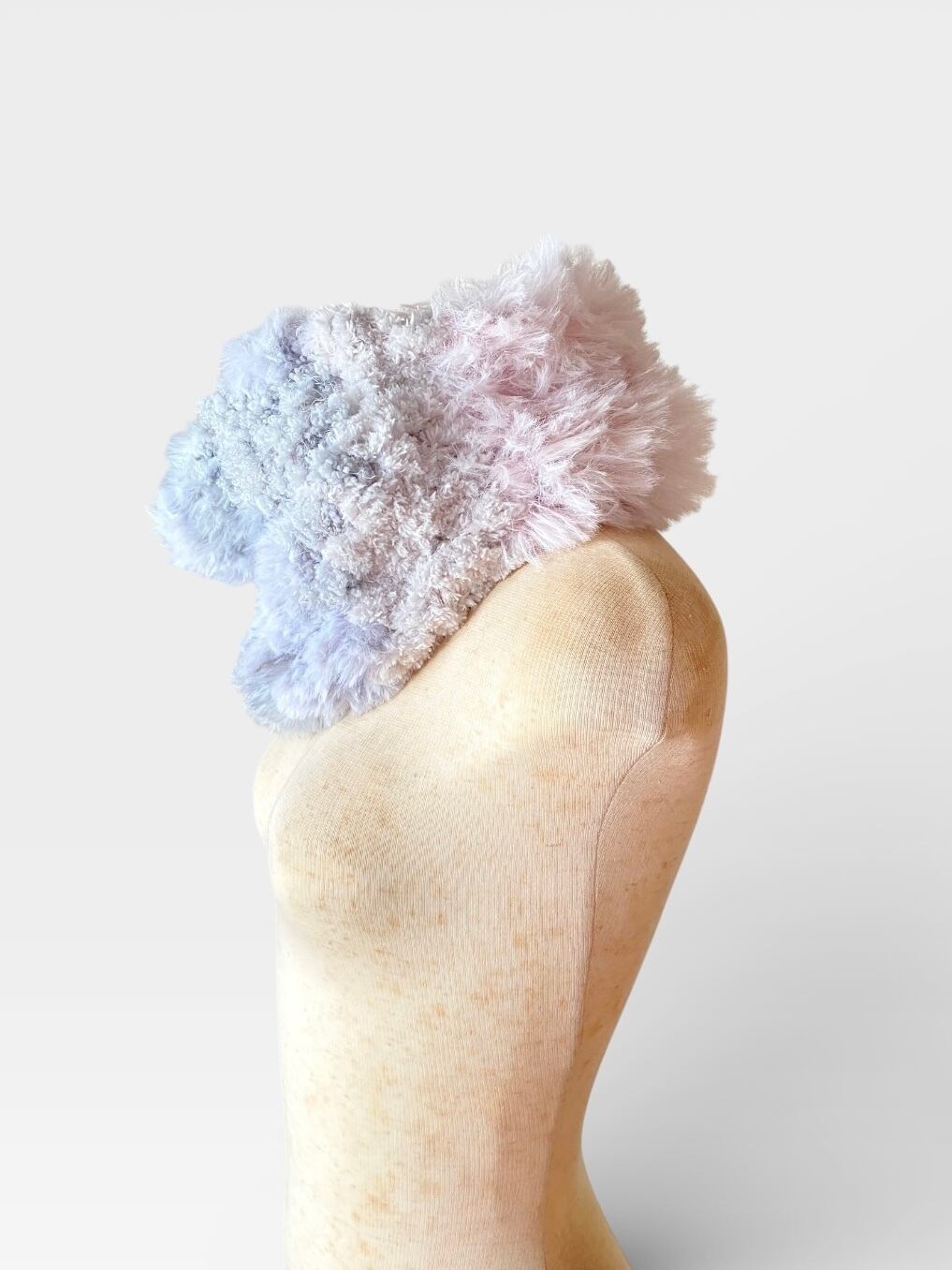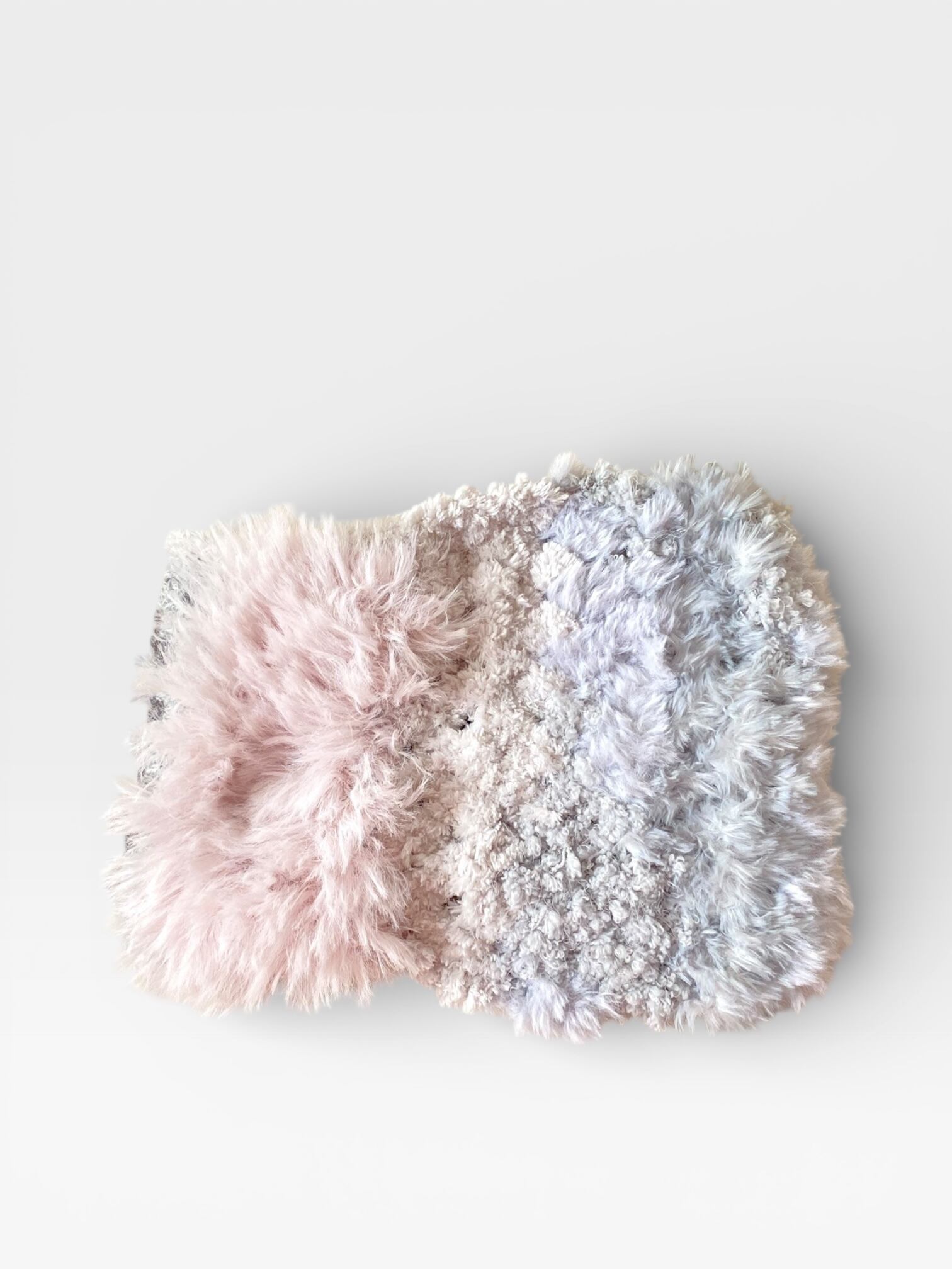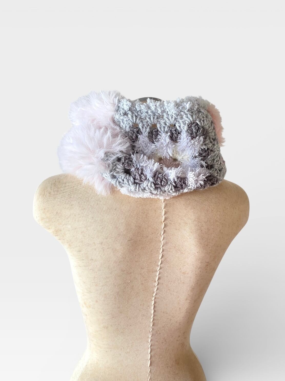 エコファー部分はベビーピンクのファーと淡いグレーの配色