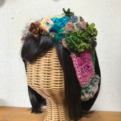 ふわふわのキャットヤーンと多彩な素材を使ったニットターバンを作りました