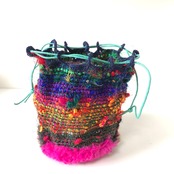 リサイクルシルクヤーンと クリアなフェイクファーで巾着を作りました