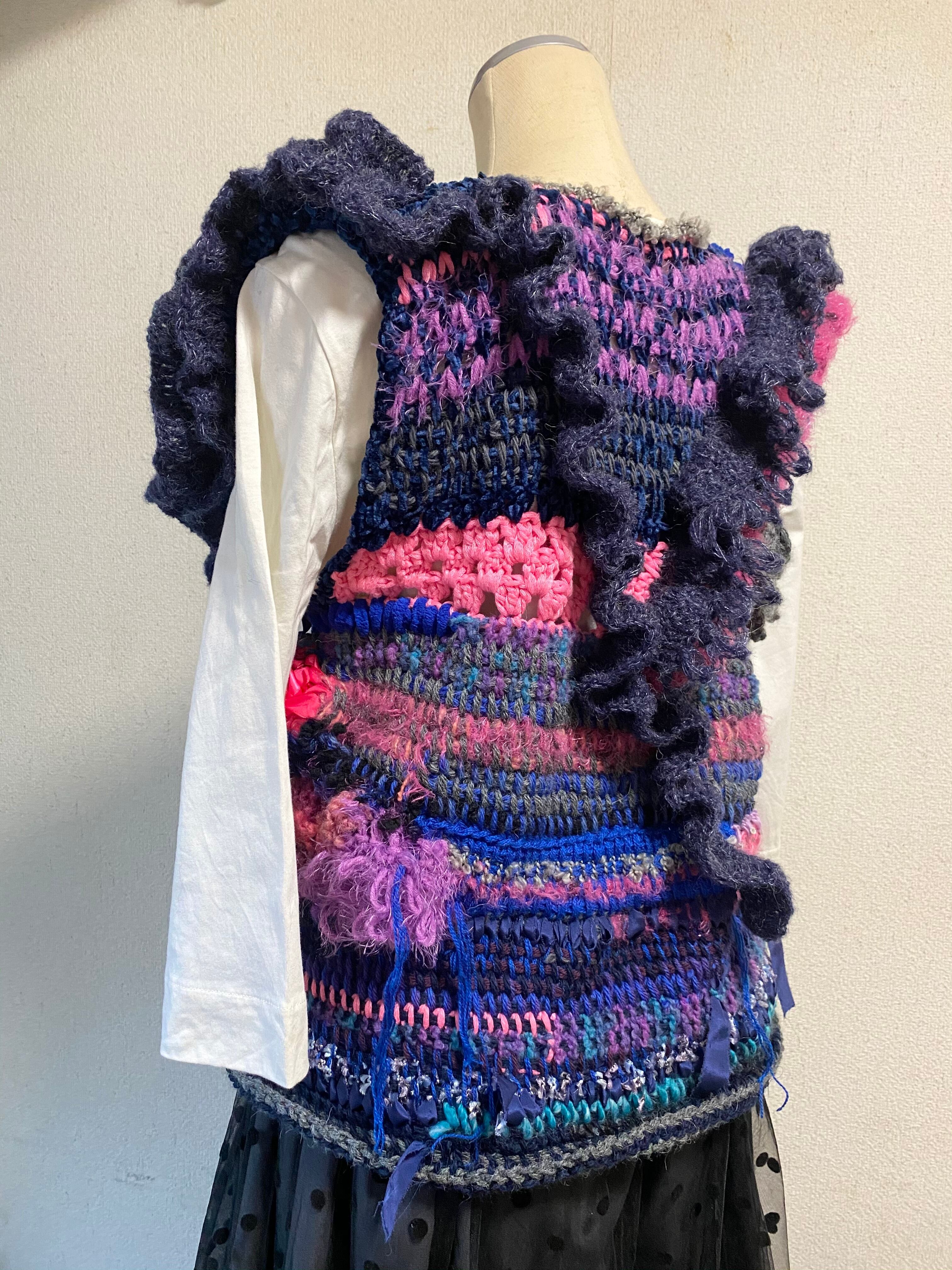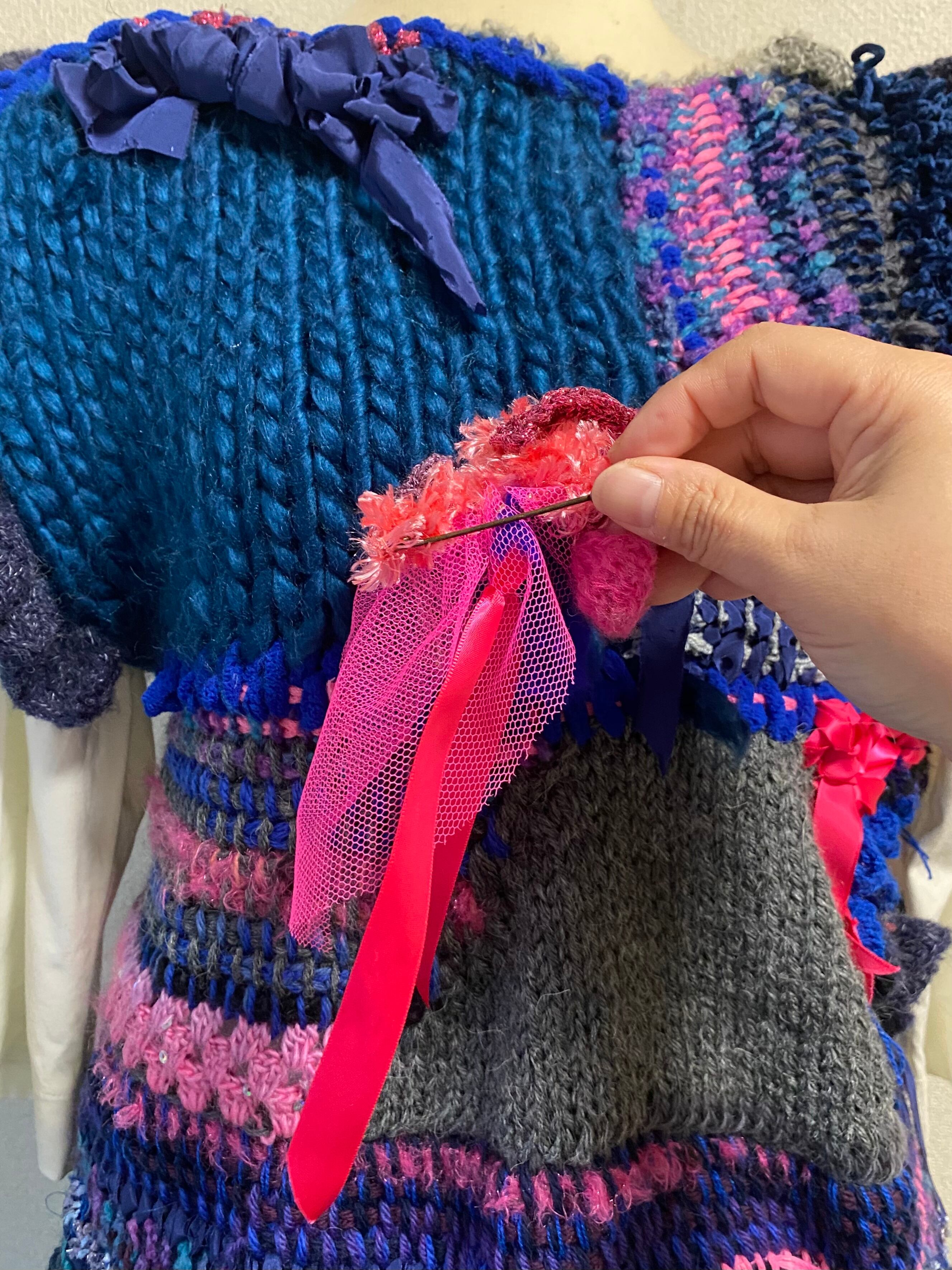 ひとつだけ、取り外し可能なコラージュをお付けしてその日の気分でニットコラージュを楽しんで頂けます