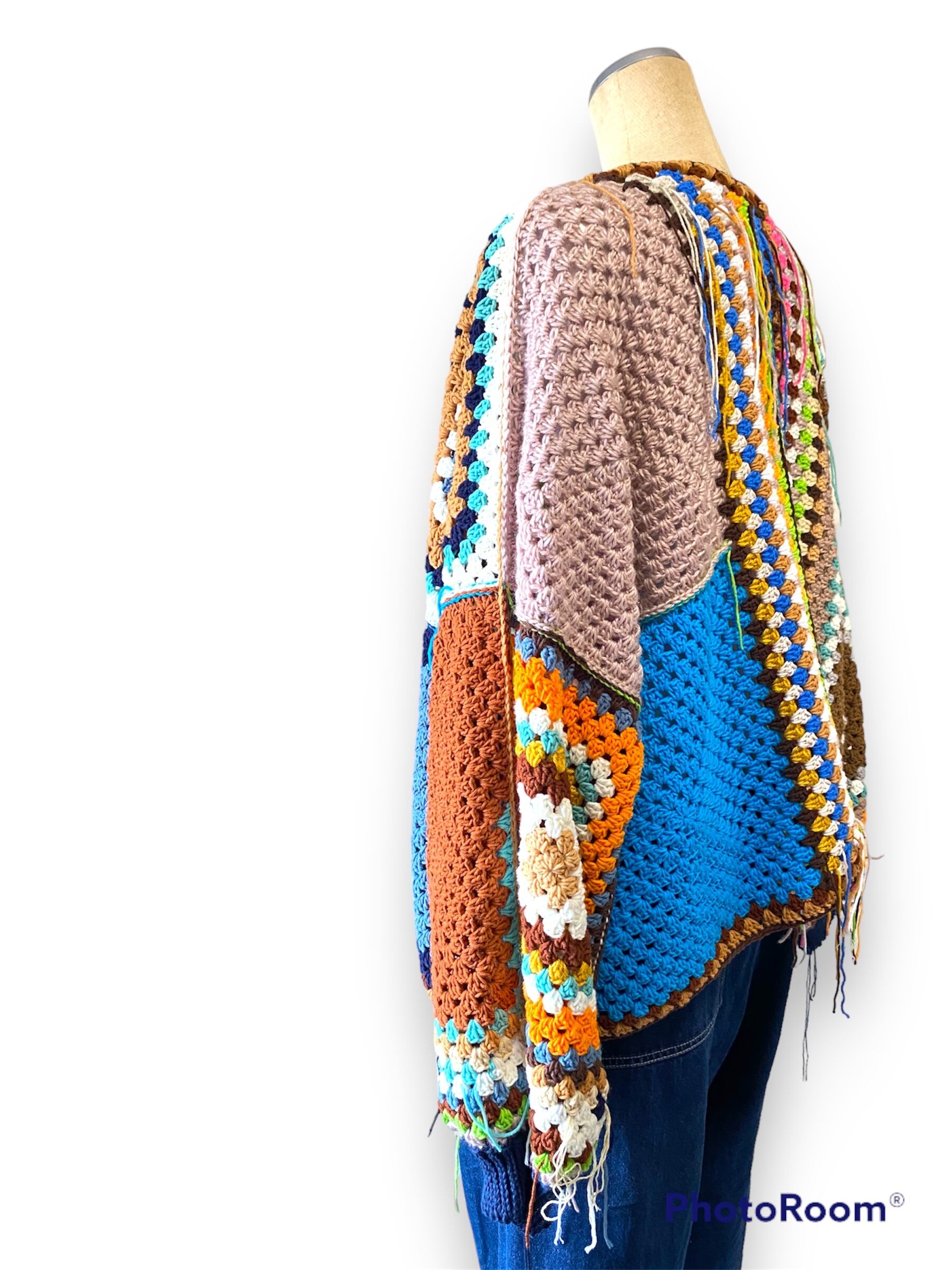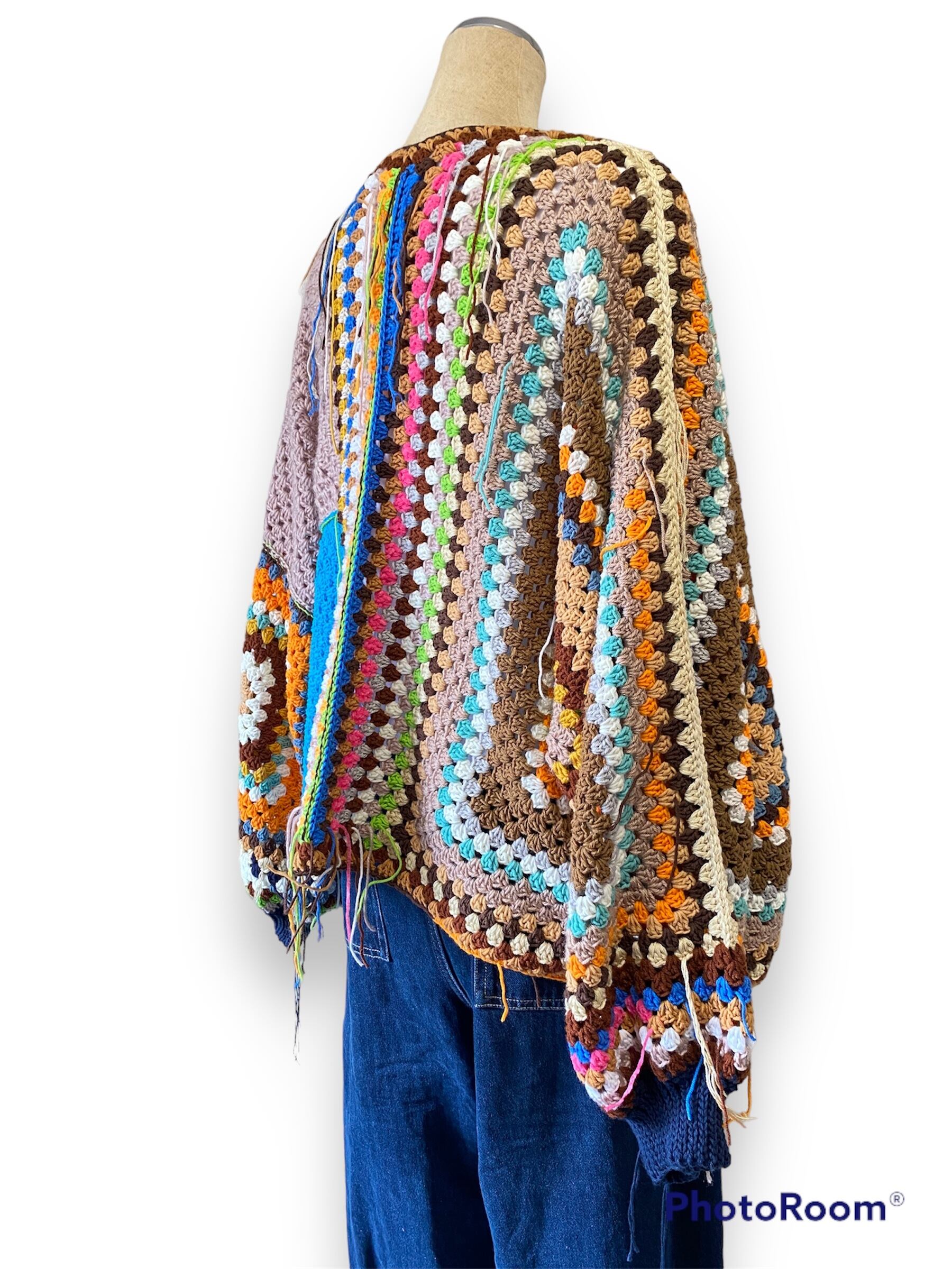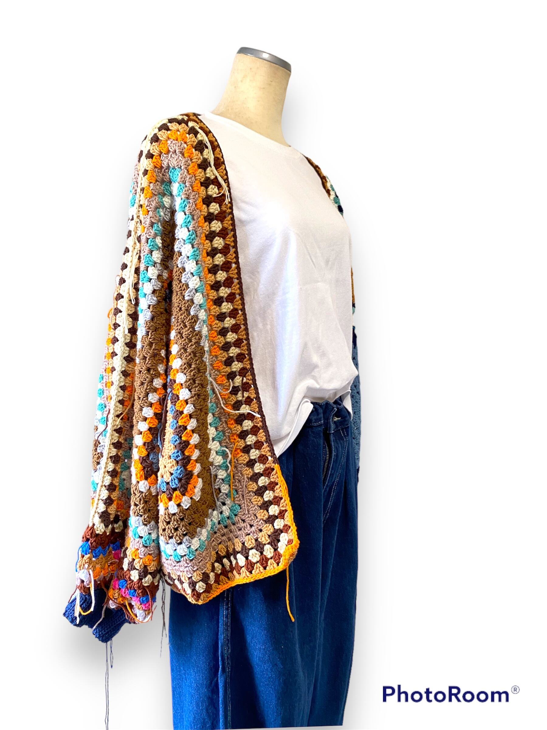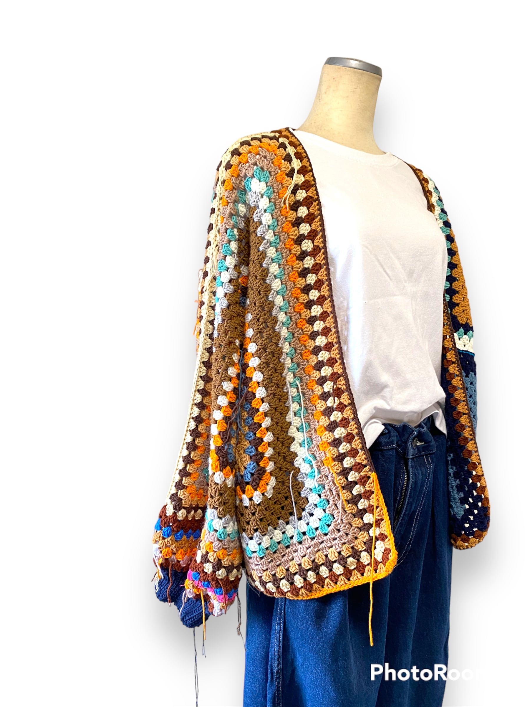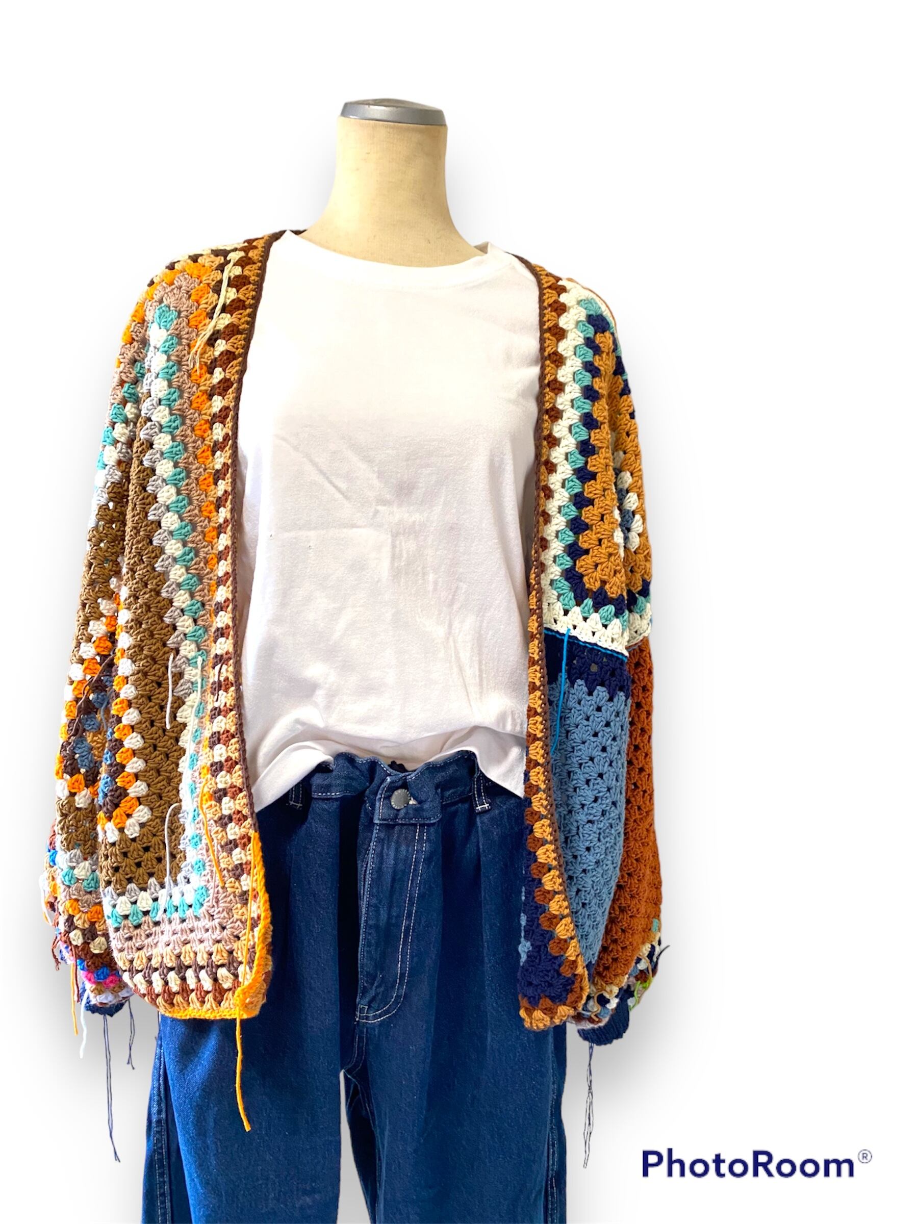 ゆるカーディガン アシンメトリーグラニーモチーフ